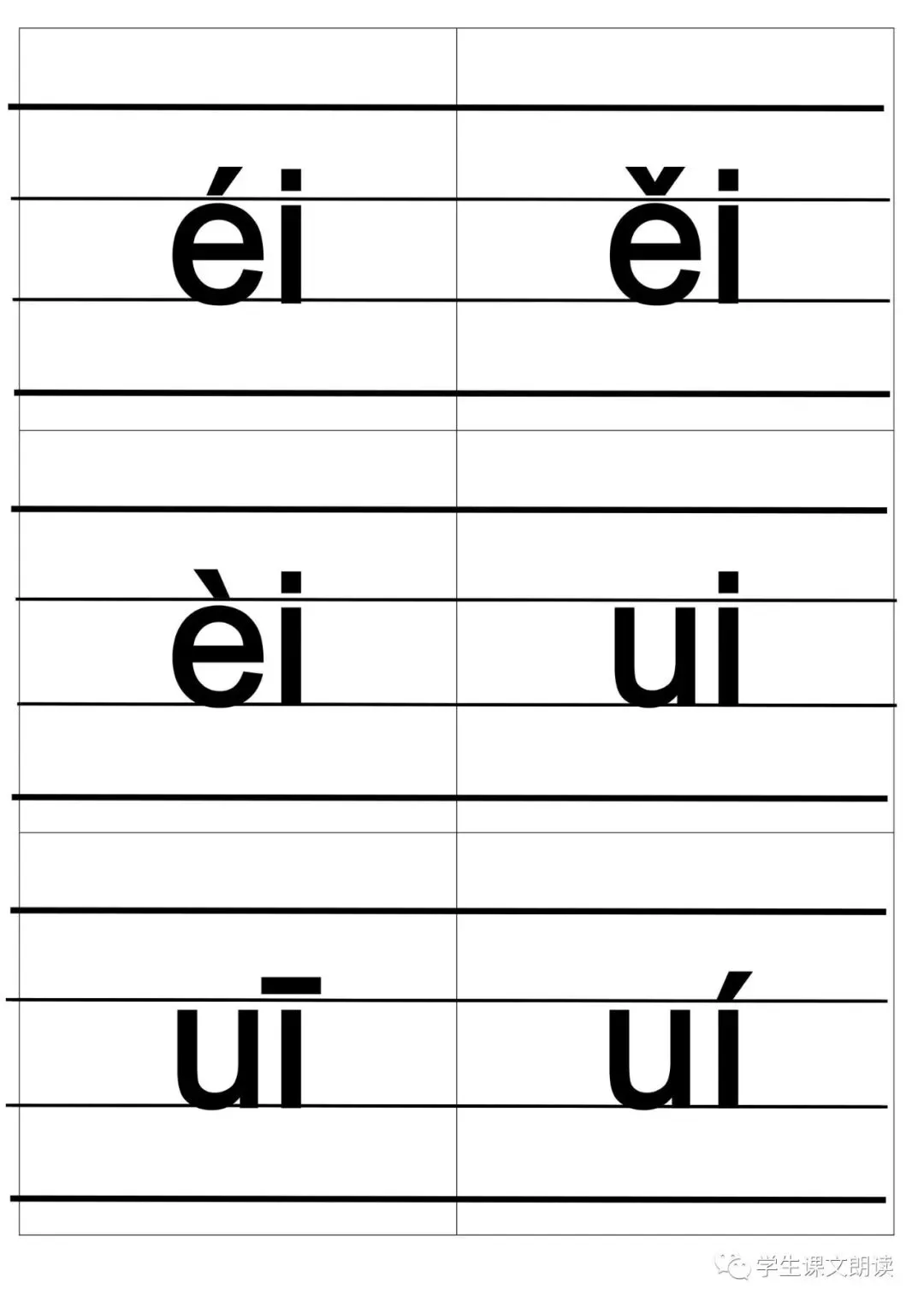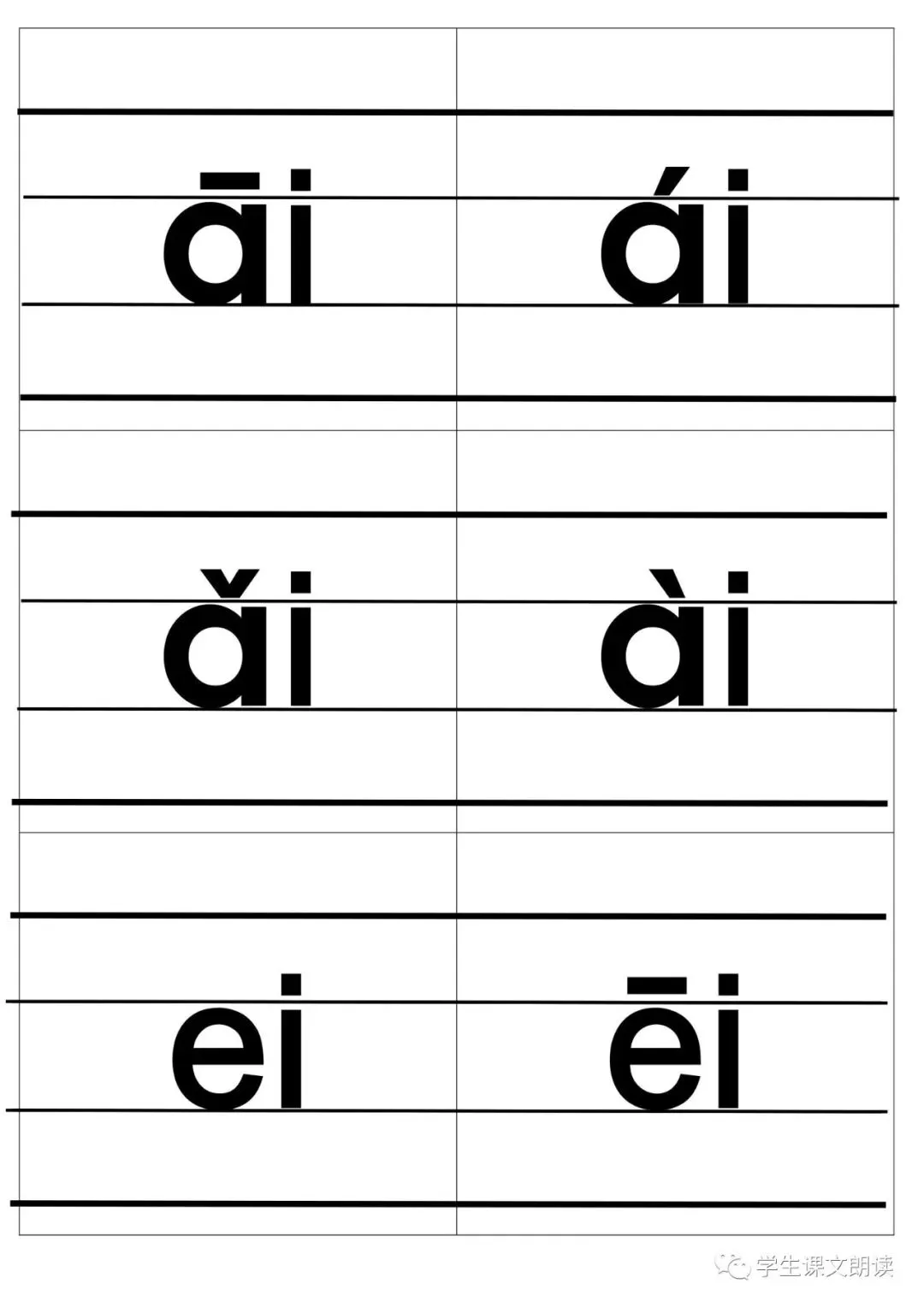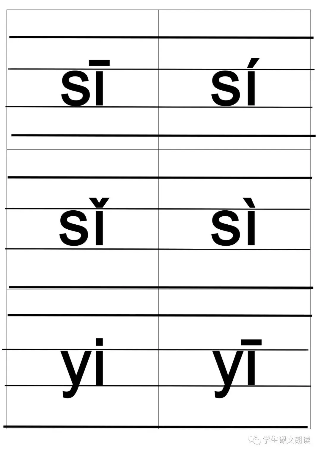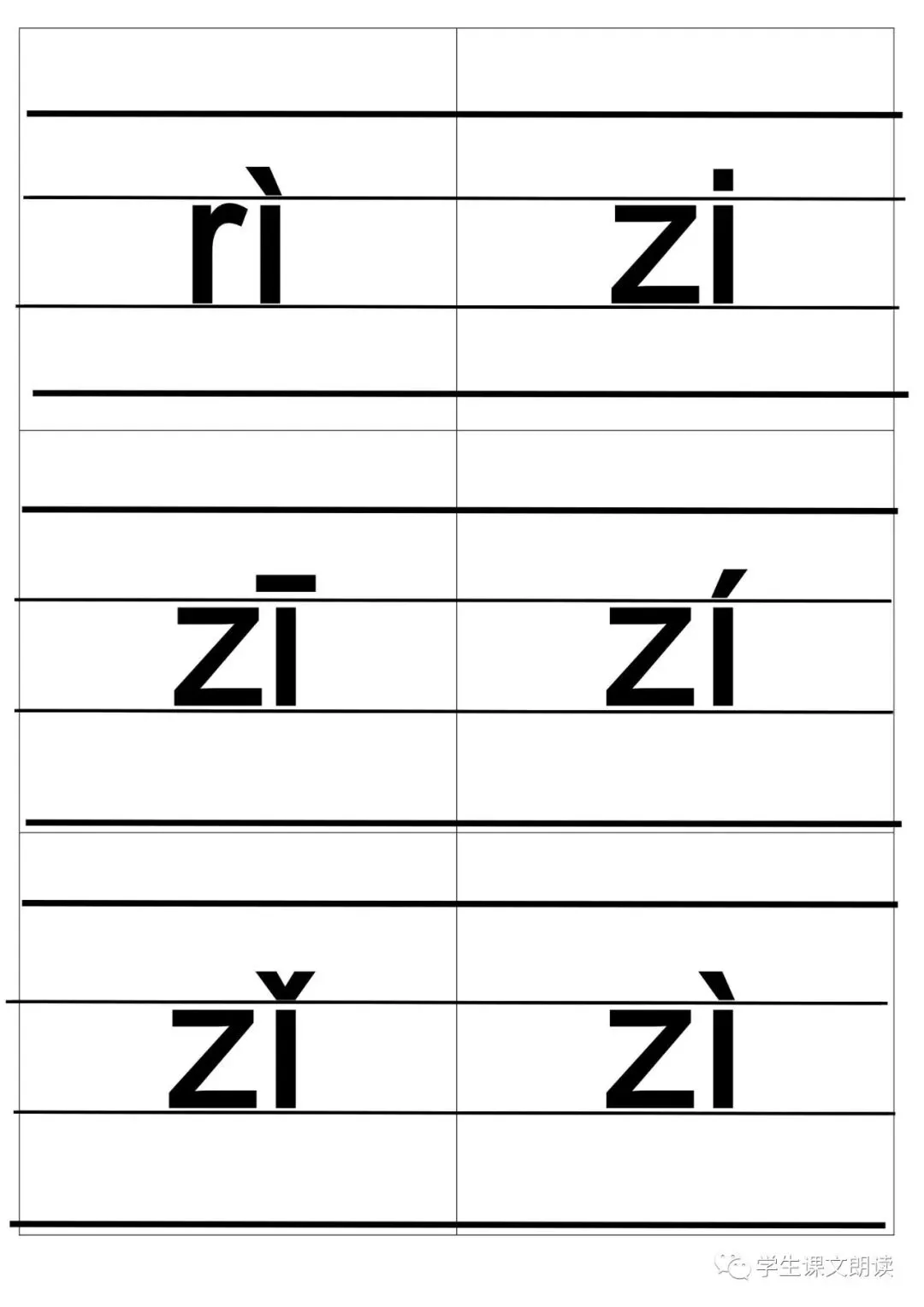 四线格汉语拼音字母大卡-带声调打印版,可下载!