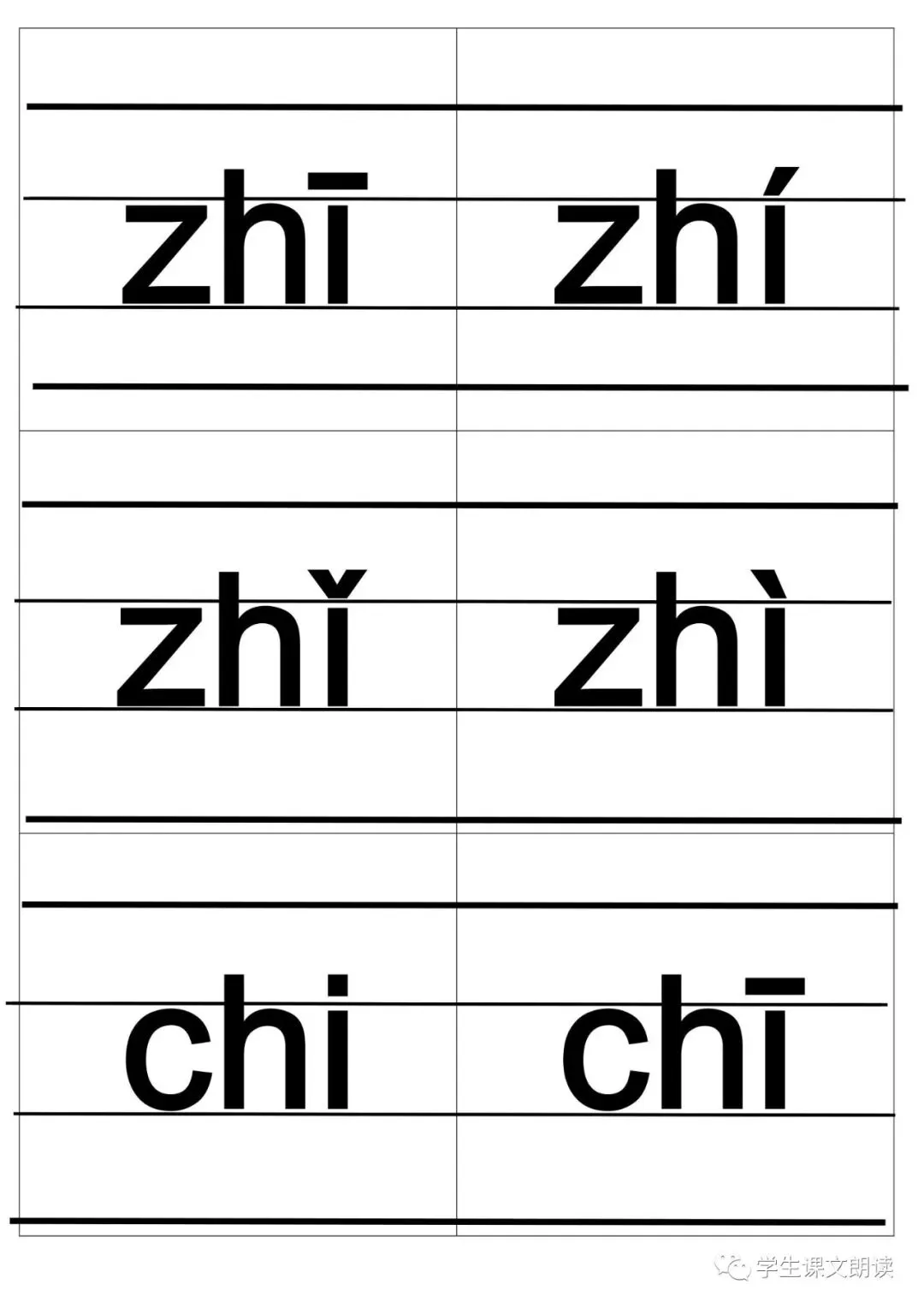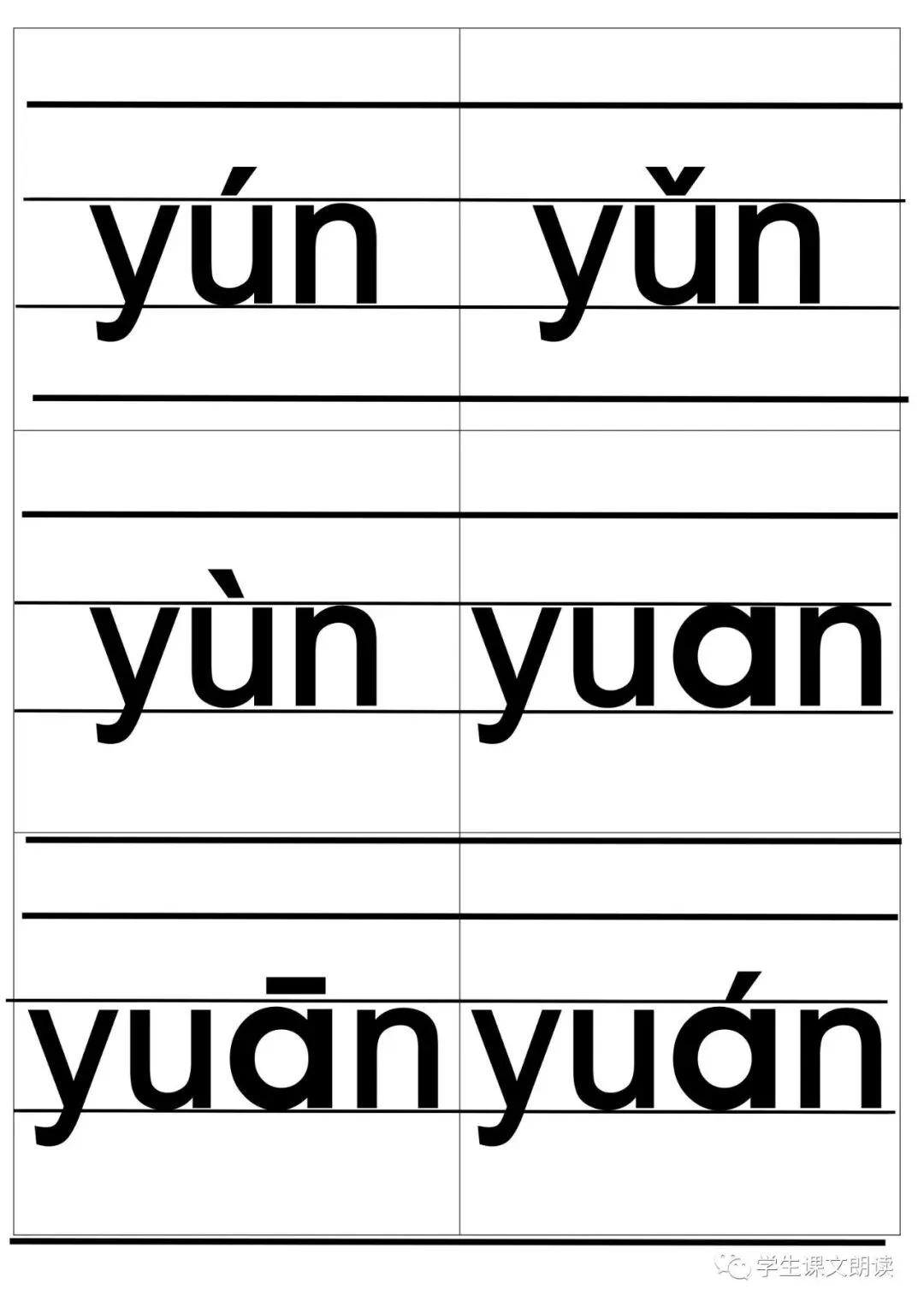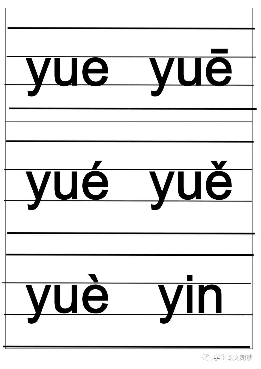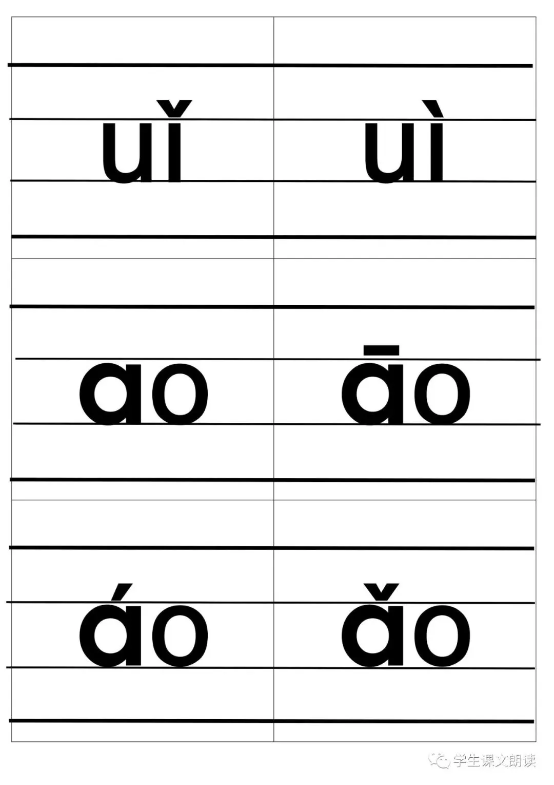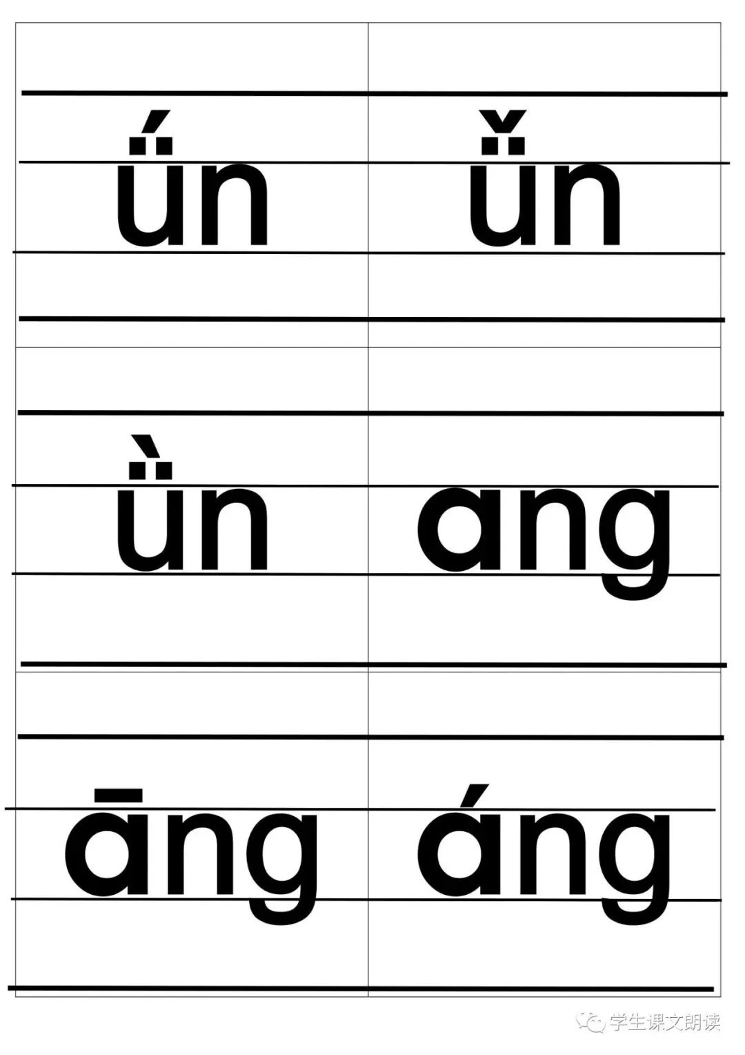 四线格汉语拼音字母大卡-带声调打印版,可下载!