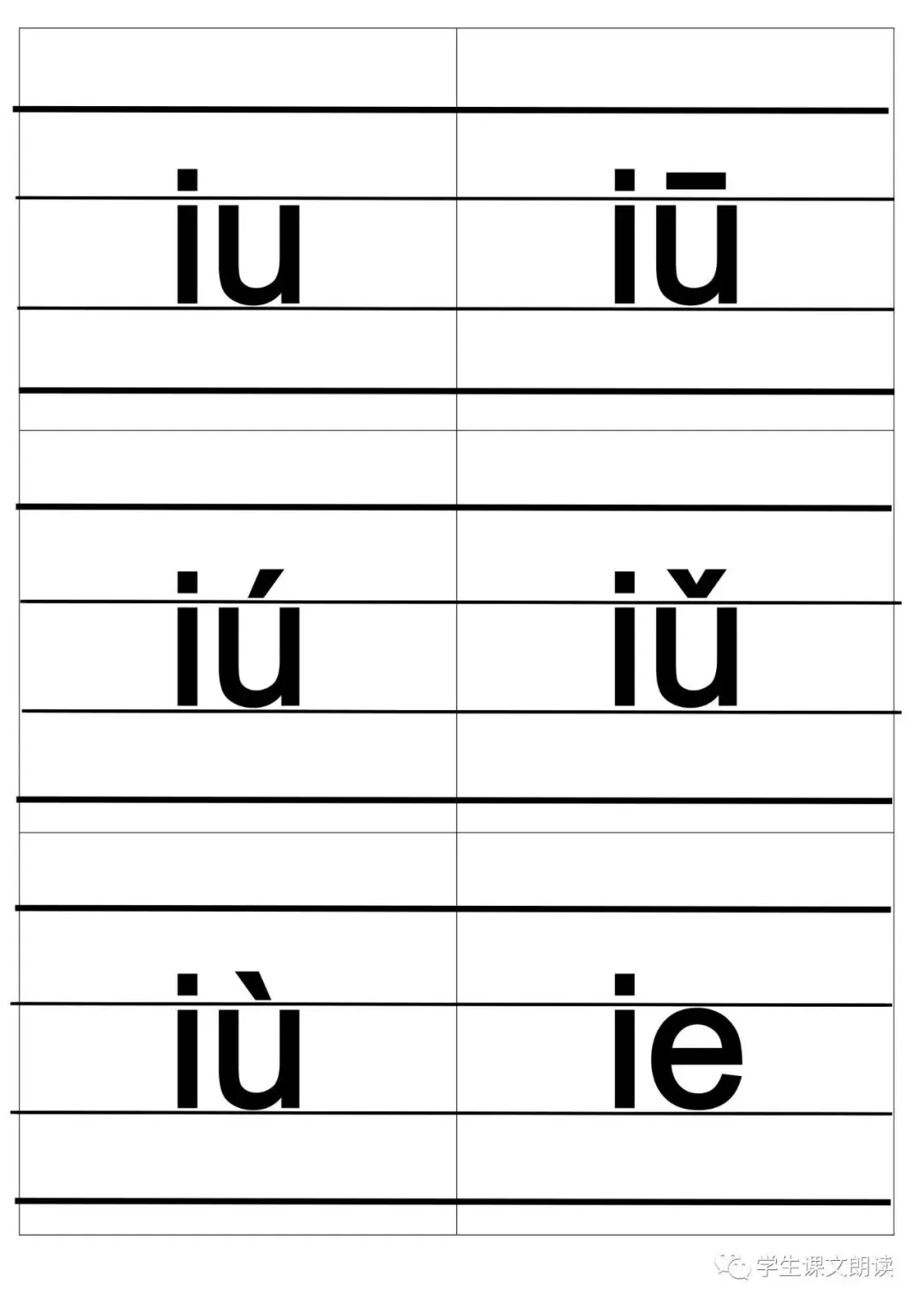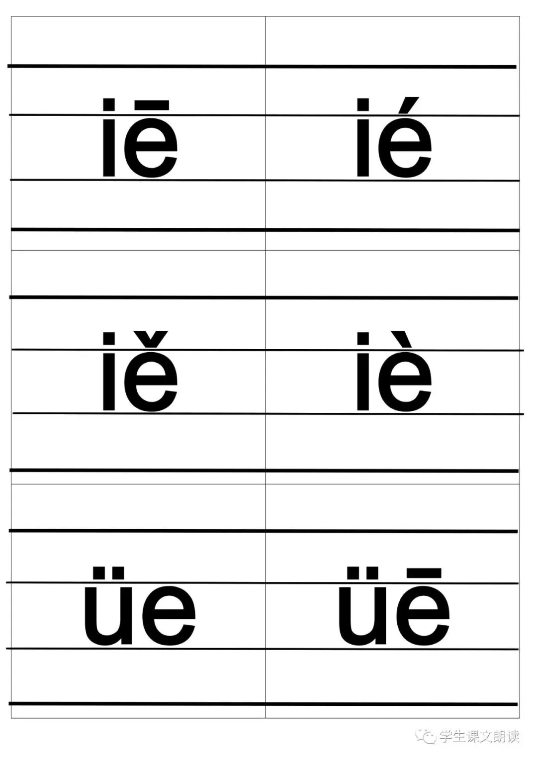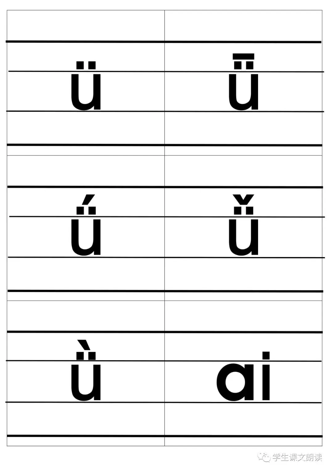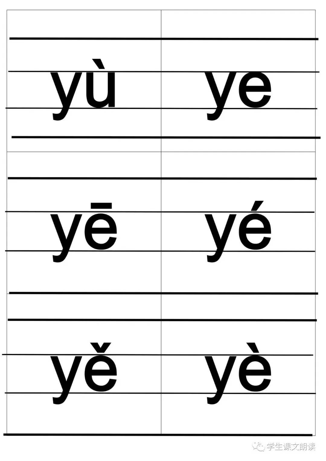 四线格汉语拼音字母大卡-带声调打印版,可下载!