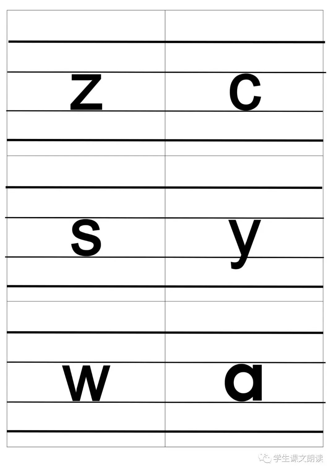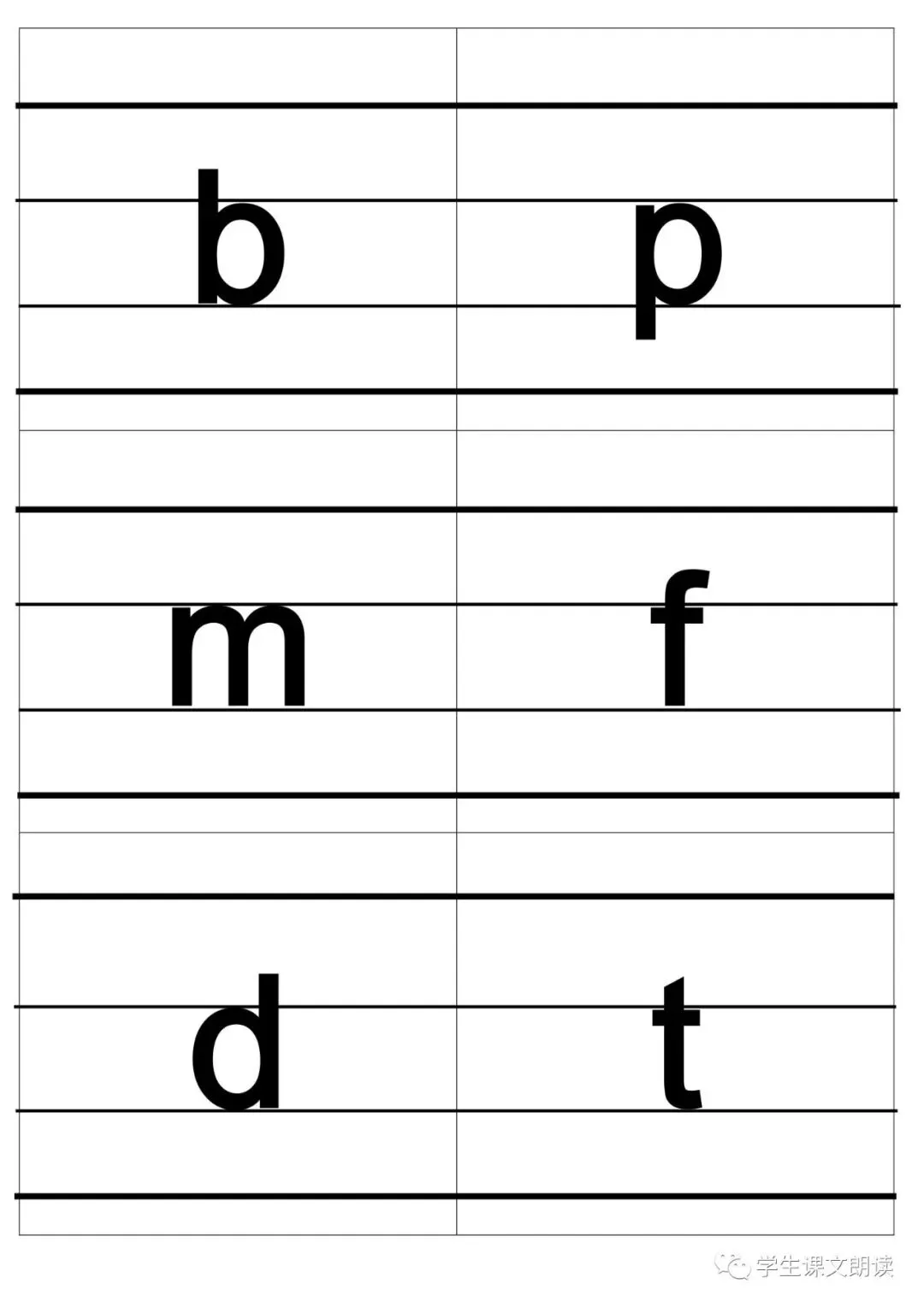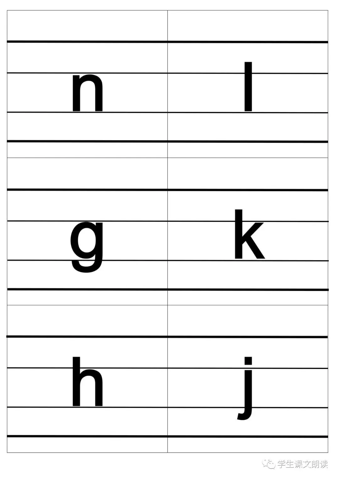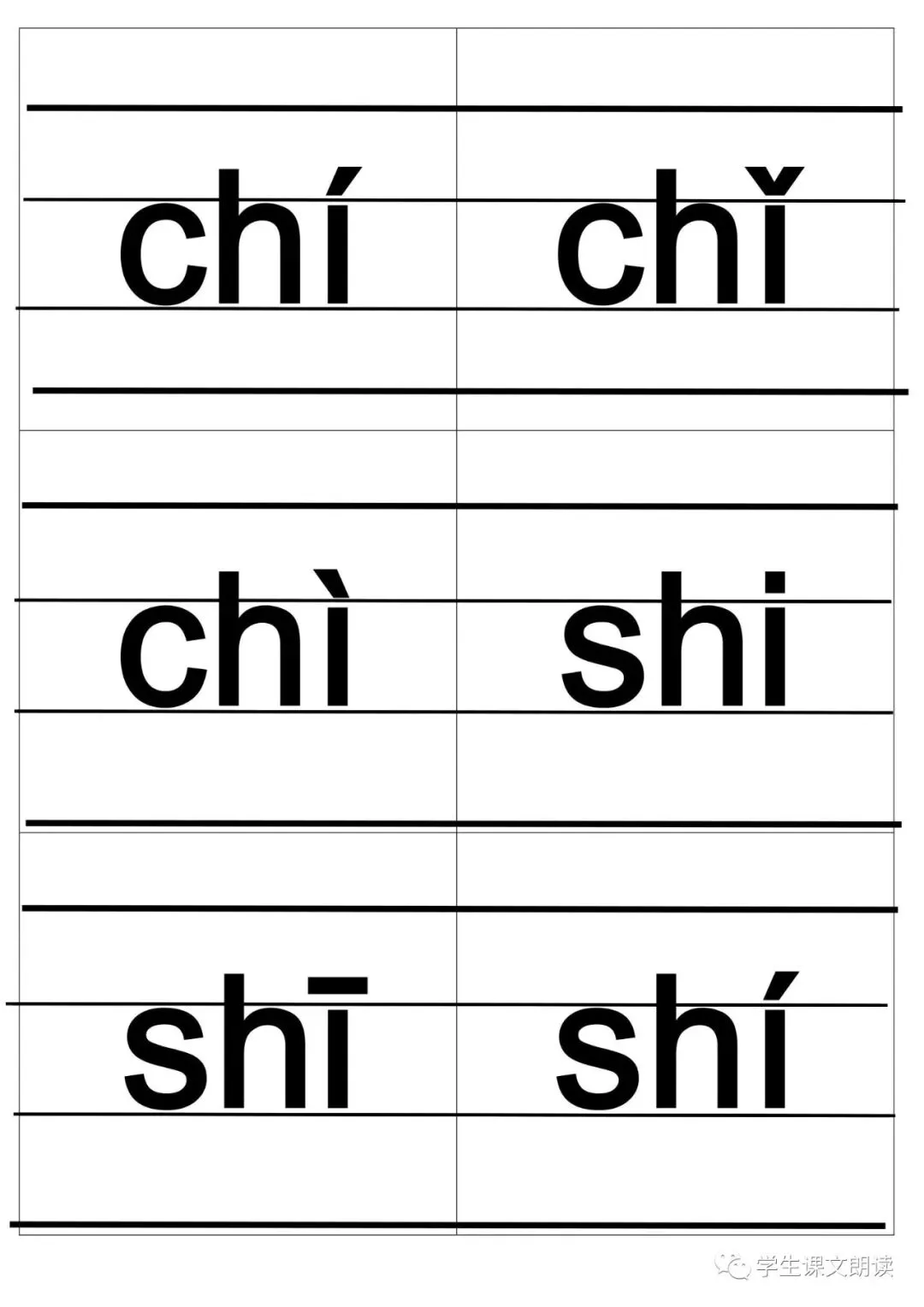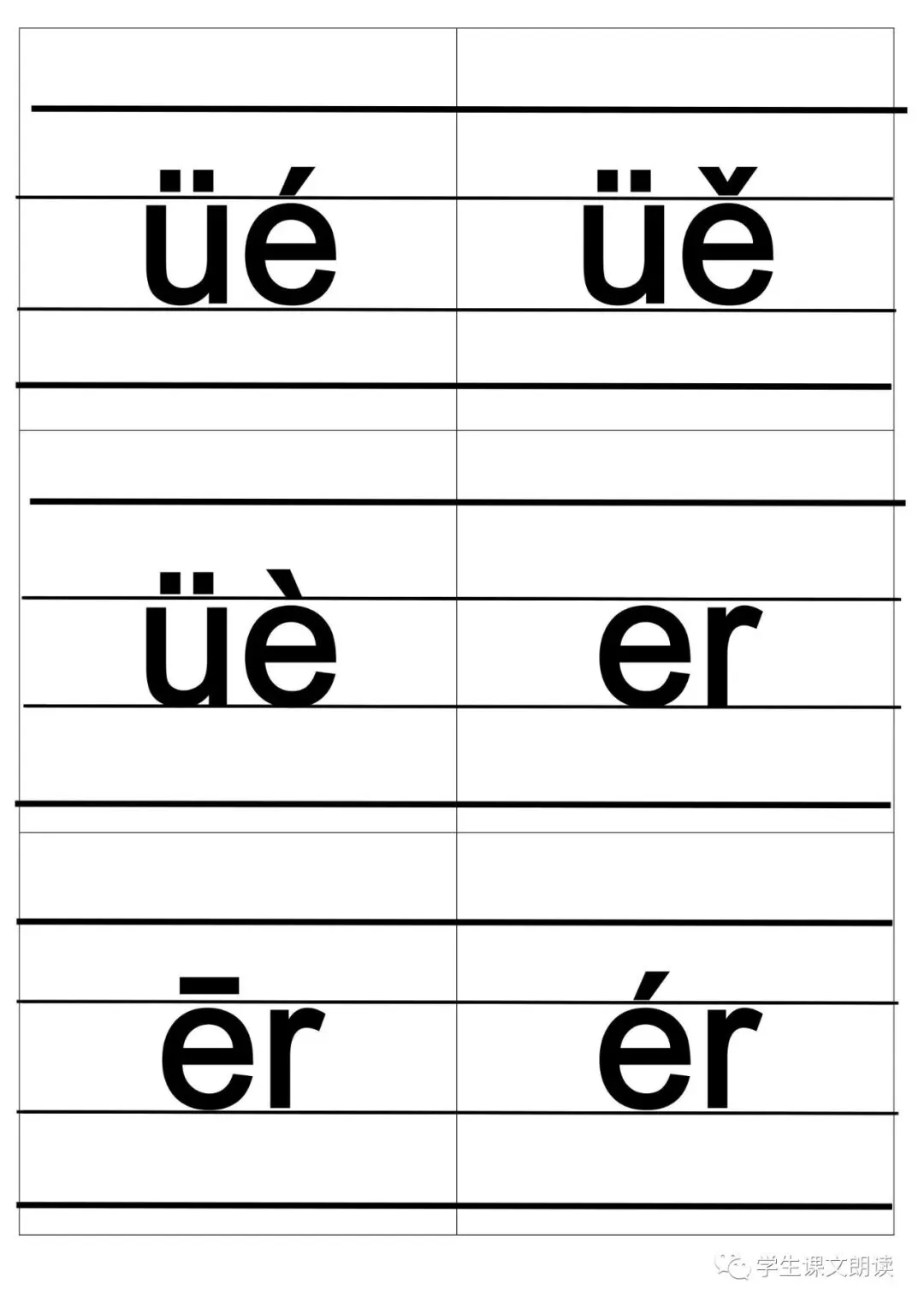 四线格汉语拼音字母大卡-带声调打印版,可下载!