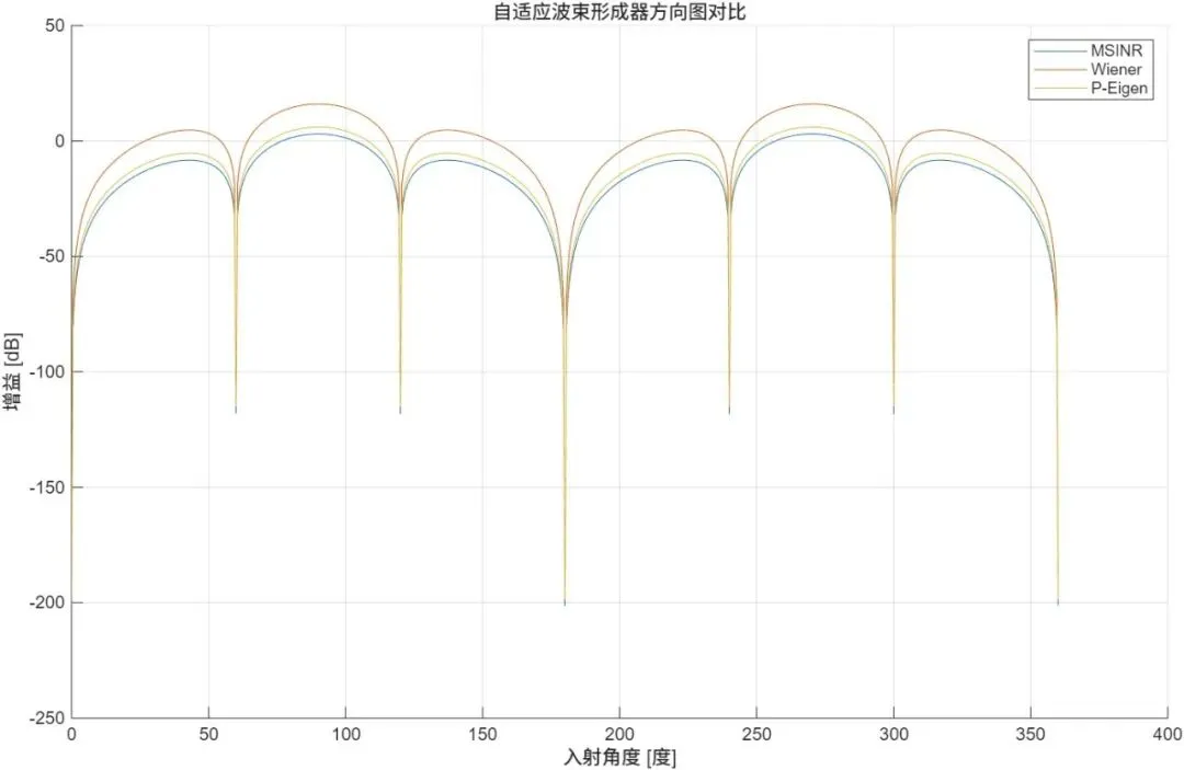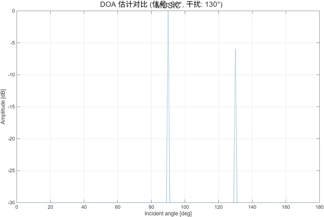 输出包含方向图、波束形成对比曲线与 DOA 谱峰。