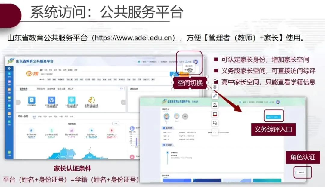 山东省义务教育学生综合素质评价系统,是山东省教育厅打造的中小学生综合素质评价系统。义务教育学生综合素质评价主要是记录、分析学生在学校、家庭、社会期间的学习和成长,发现、展示和培养学生全面发展状况和良好个性的有效手段,是育人导师指导学生成长、学校改进提升育人工作方式。依托现有普通高中综合素质评价的有效模式,将学段延伸到初中和小学,形成贯通12年的学生全过程学习成长档案,能够全面地向家长反映学生综合素质发展状况。