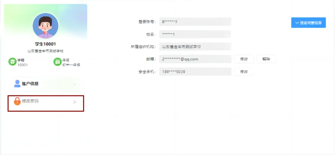 学生点击右上角头像,【个人中心】–>【账号信息】可添加绑定邮箱或手机号。