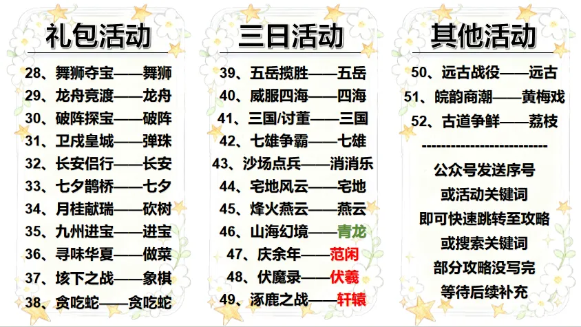 公众号自动回复优化说明 ☆♪—— 🤍 🤍 使用说明 🤍 🤍 ——♪☆ 之前的菜单是文字模式,视觉效果较差,现在 【点击公众号主页——私聊——发送关键词】 即可获取对应攻略,或者右上角放大镜查找 ☆♪—— 🤍 🤍 效果演示 🤍 🤍 ——♪☆ ☆♪—— 🤍 🤍 本周群码 🤍 🤍 ——♪☆ ☆♪—— 🤍 🤍 直播间礼包码 🤍 🤍 ——♪☆ 兑换码(转自群友): IBEV8P PM8YIE Q9WR6P 2S4D6G K5M7N2 UPED59 OERPL5