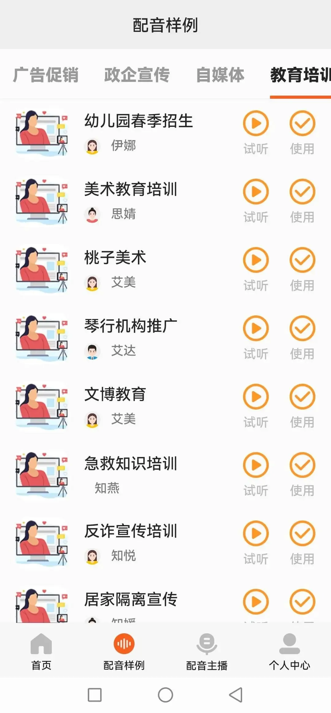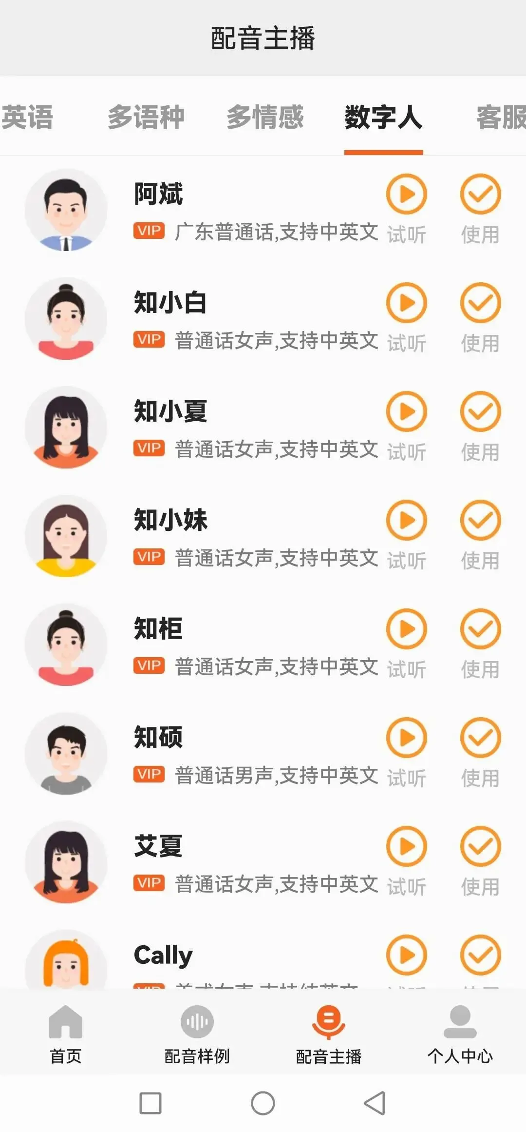 配音主播有男声、女生、童音、方言、多语种、数字人、客服、直播等众多选项。