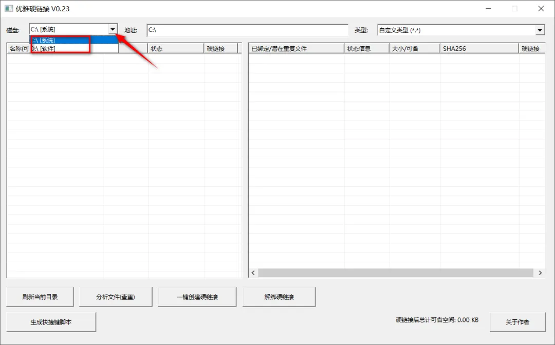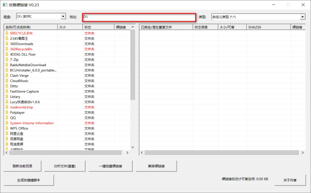 软件完全免费,由吾爱大佬原创,大小仅132KB,单文件免安装,第一步先选择磁盘,接着在左侧双击选择文件夹或填入地址。