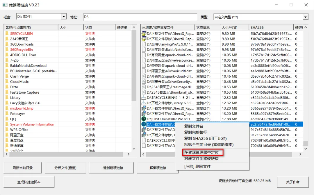 然后点击分析文件,查找速度挺快的,右键点击结果,选择在资源管理器中定位,即可快速跳转文件位置。