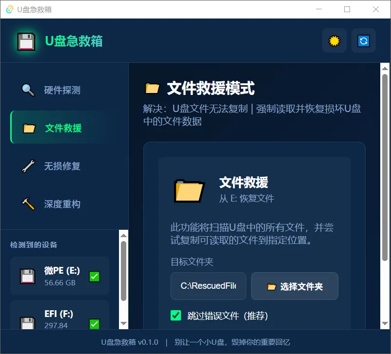 文件救援:强制读取损坏U盘中的数据。
