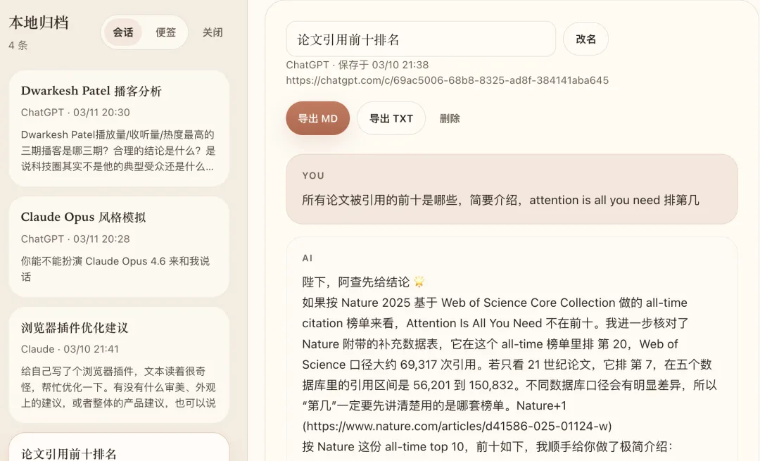 手动复制了几次上下文有点麻烦,就先写了个一键导出当前页面所有聊天记录的功能。