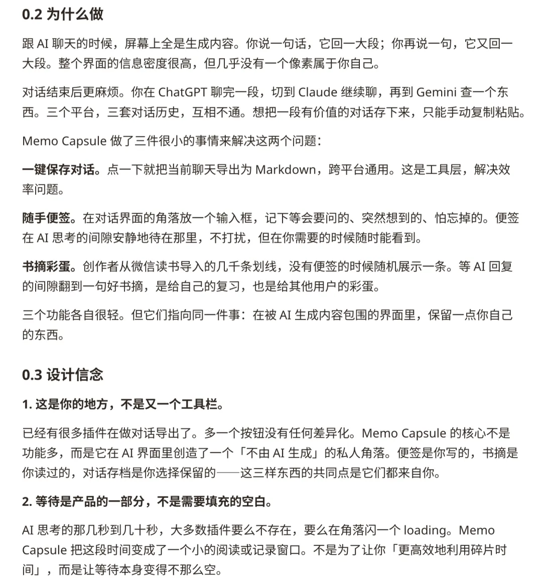 Claude 按照我的想法和描述,给我补了一份产品文档: