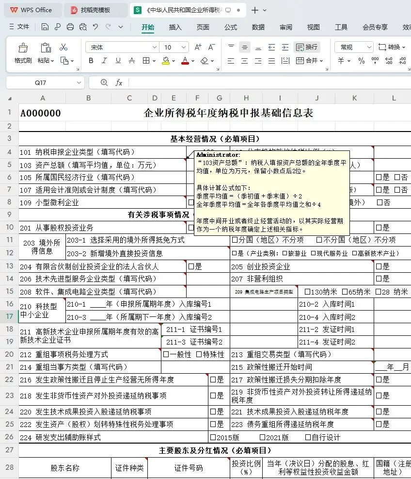 A000000 企业所得税年度纳税申报基础信息表
