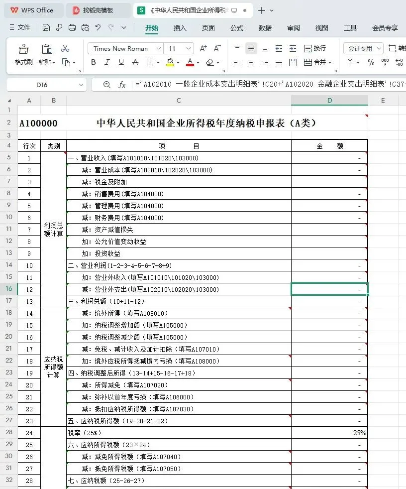 企业所得税汇算清缴申报表填写说明,含37张申报表模板(带公式)