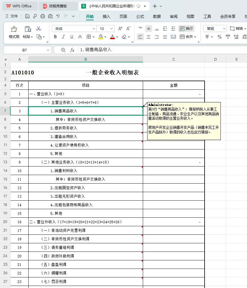 A101010 一般企业收入明细表