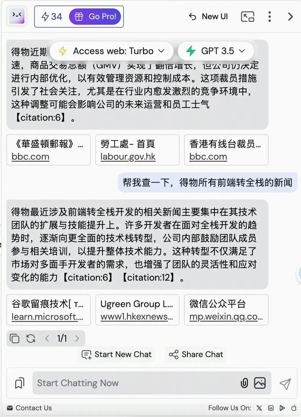 我打开试用了一下,发现确实是符合我预期的功能,它就是一个谷歌浏览器插件,只要登录之后一点击就可以切换到一个AI对话页面。