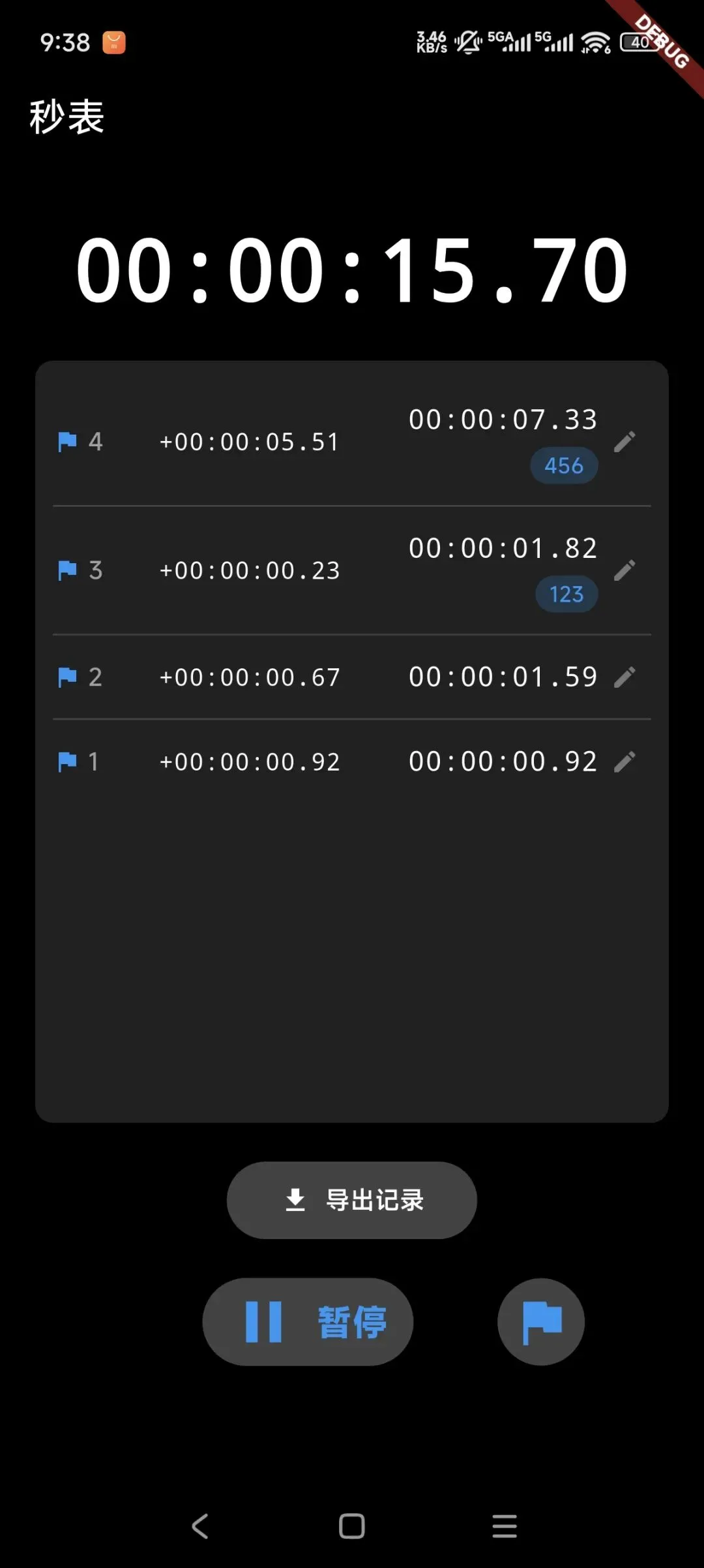 有时候喜欢记录每段时间干了什么事,每件事持续了多长时间。手机自带的秒表功能可以计时,每个时间点可以记录一下,但是无法添加标签表示这个时间段干了啥。更无法把记录导出。