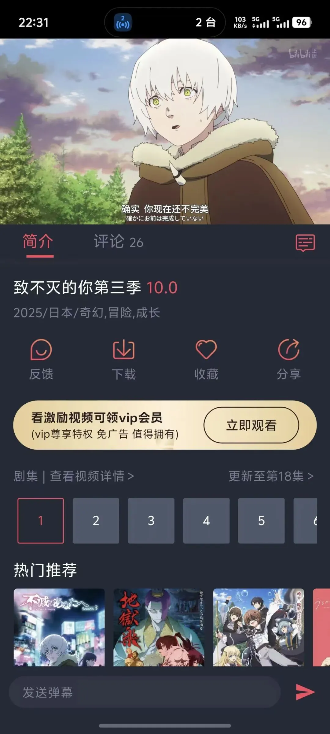 弹幕互动:虽然无广告,但热闹不减!彩色弹幕、表情包互动,边看边聊,寻找同好。