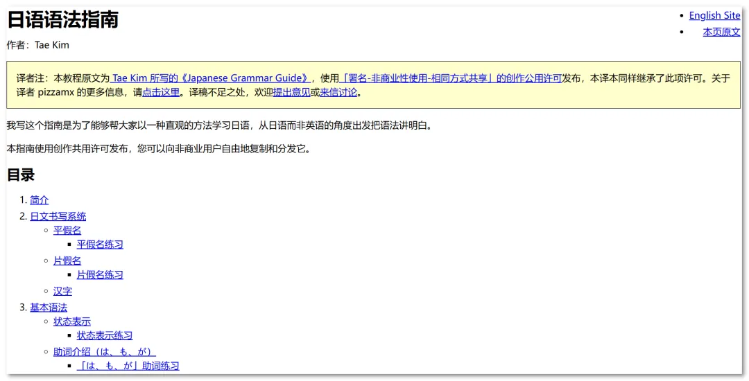 日语语法指南是一个日语学习在线网站,界面简洁,内容全面。