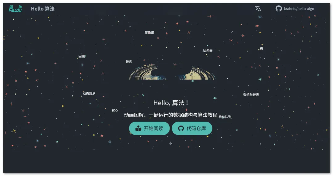 Hello算法是一个数据结构和算法学习网站,以图片、文字和代码相结合的方式呈现内容,直观易懂。