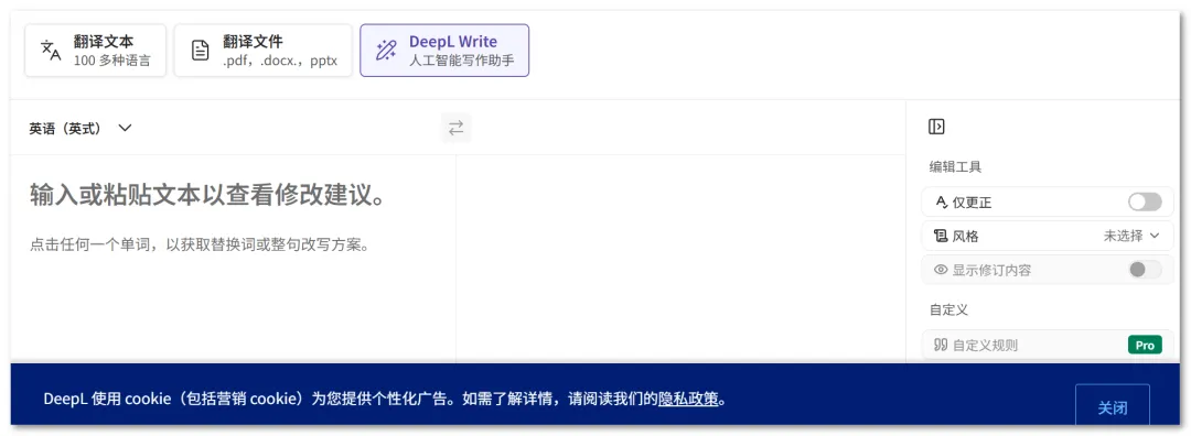 DeepL Write 是一款好用的在线写作助手工具;支持网页端使用。