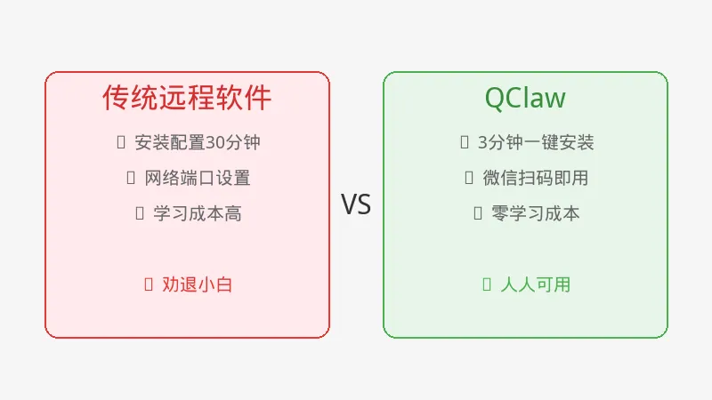 可以说,QClaw 不是简单的远程工具升级,而是完全不同的产品形态。