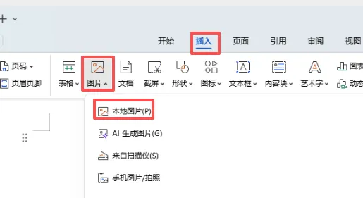 7、点“插入 > 图片 > 本地图片”,将之前保存到电脑中的身份证的一面插入文档中。