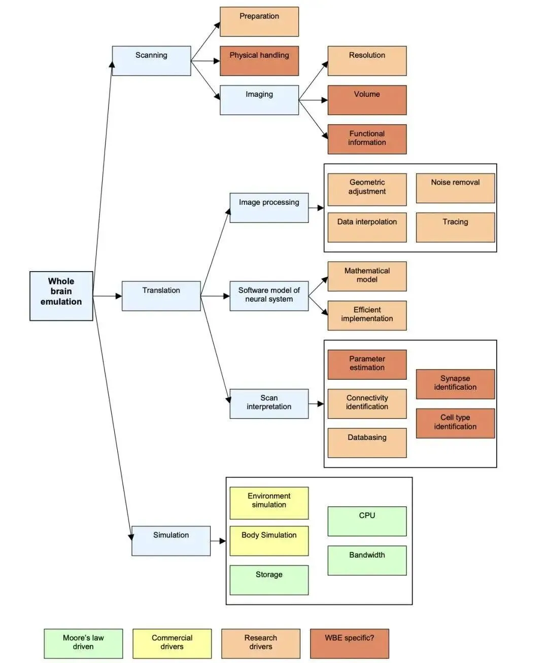▲Whole Brain Emulation:A Roadmap,推动全脑仿真(WBE)关键技术发展的技术驱动力
