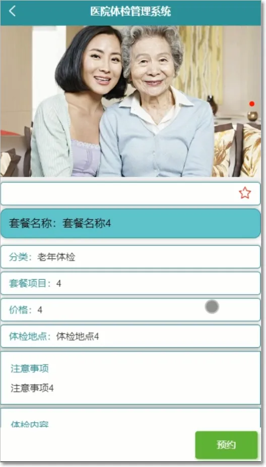 (3)预约功能,在体检套餐的详情里可以直接预约;