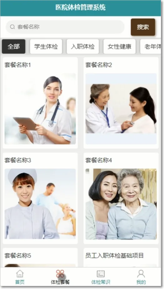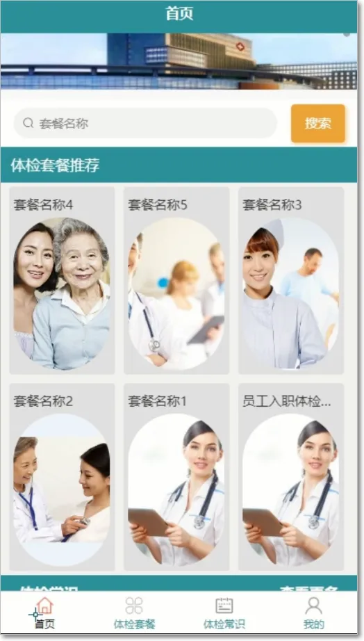 (1)体检套餐功能,根据不同的分类进行体检套餐的展示;