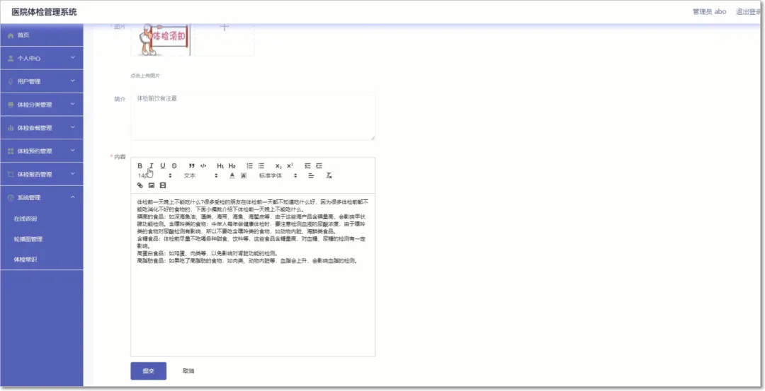 (3)体检常识管理功能,对体检常识进行发布和管理;