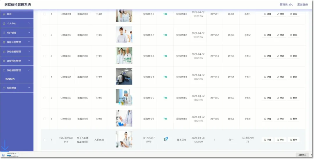 (6)体检报告管理功能,可以管理用户的体检报告信息;