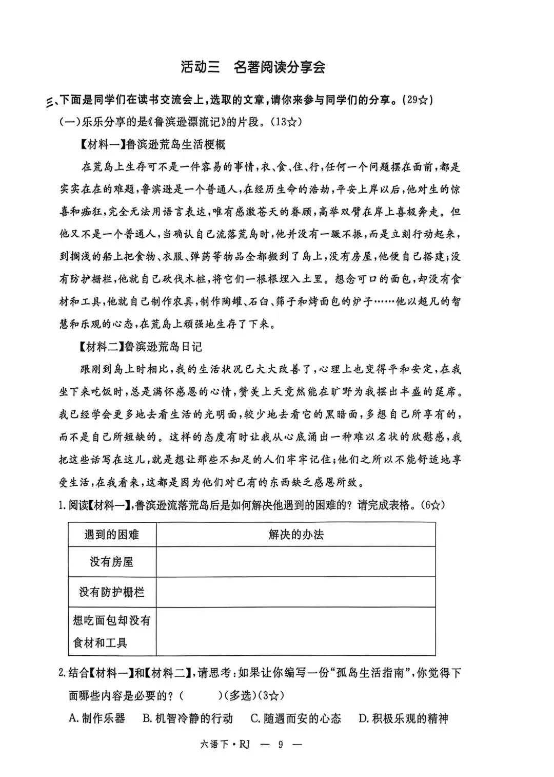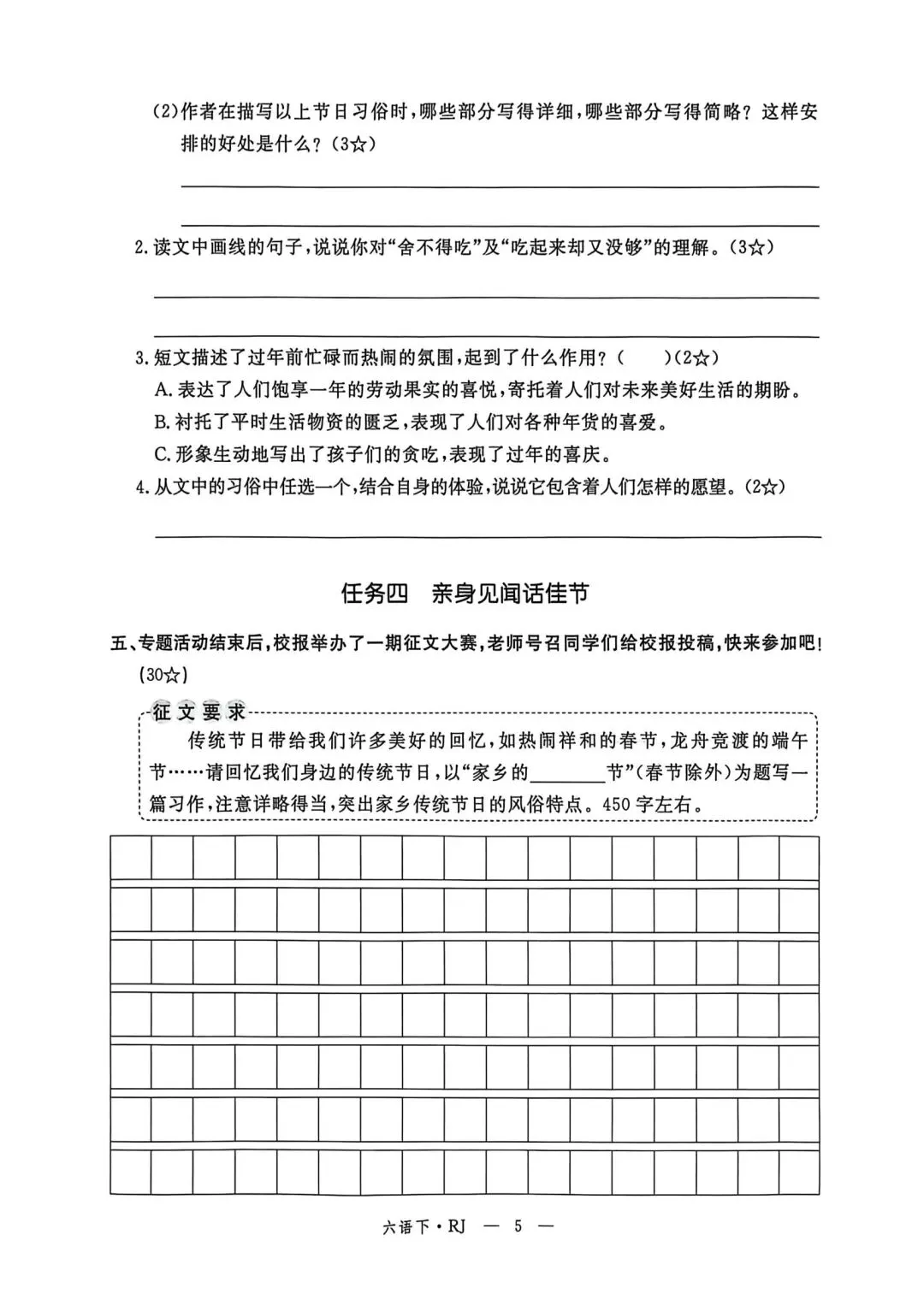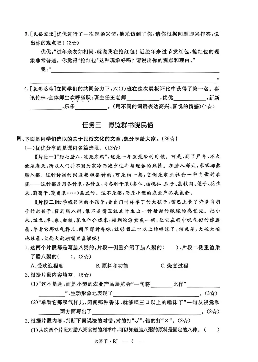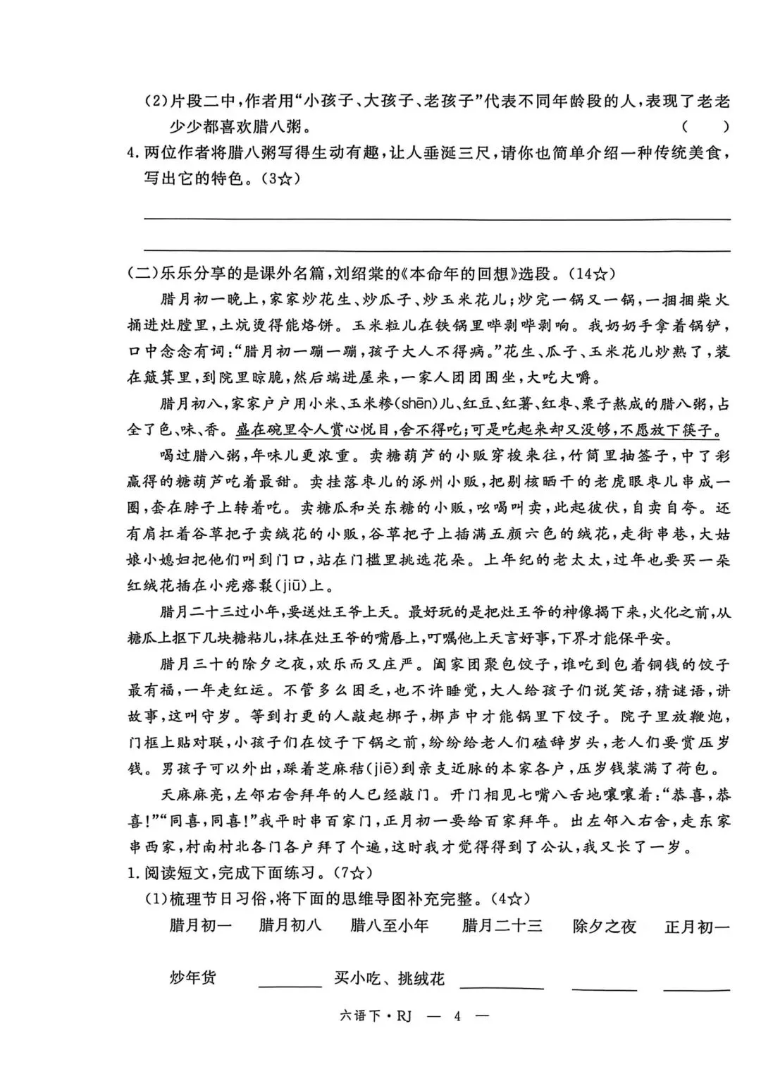 六年级下册语文素质评估卷含答案可打印