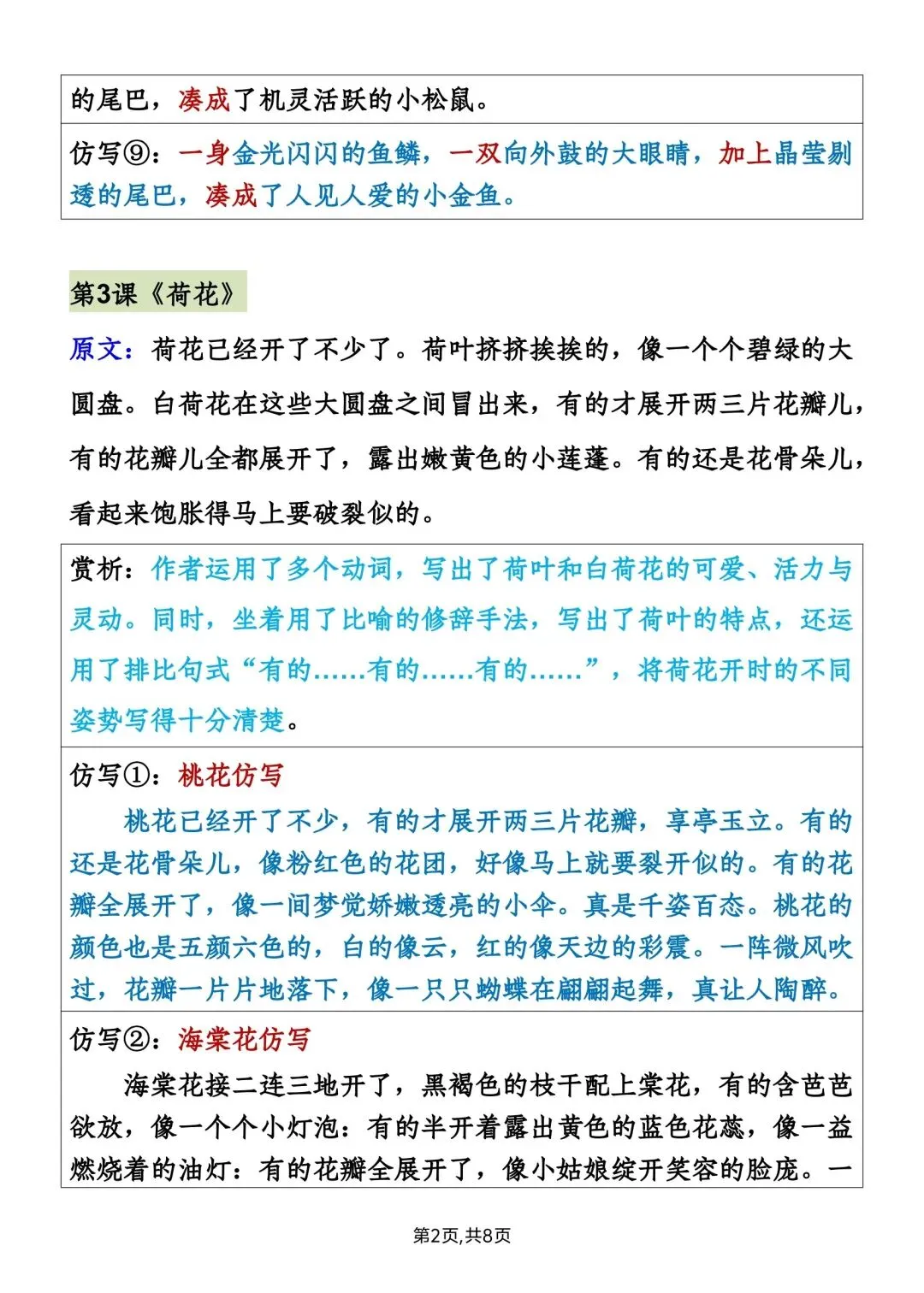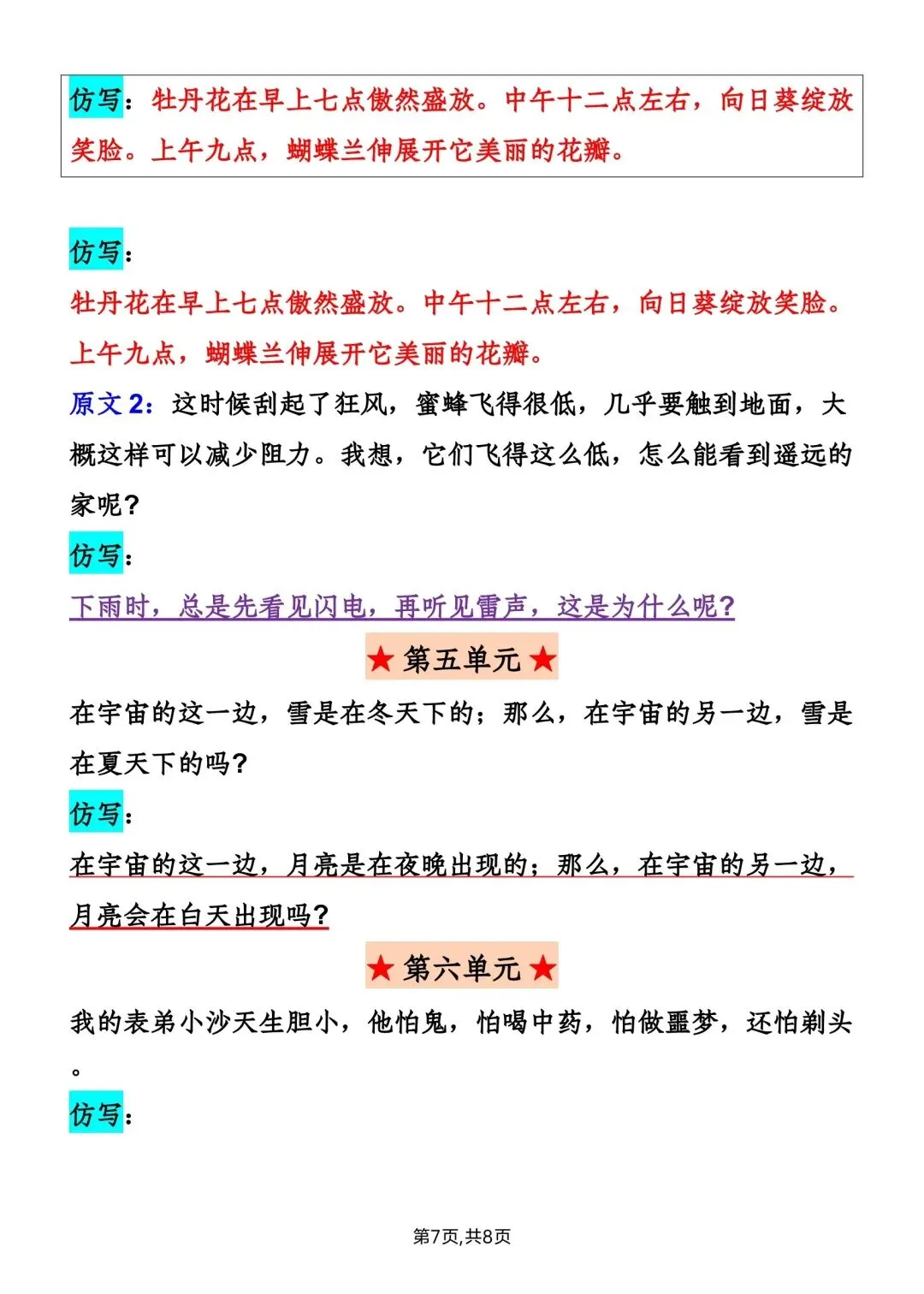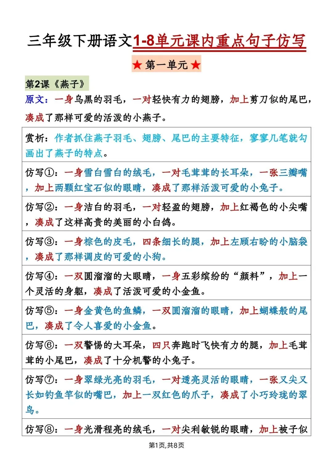 新版三年级下册语文重点句子仿写读背版高清电子版可打印
