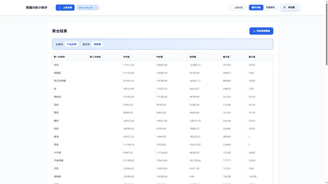 data-analysis 的诞生,正是为了弥合这一鸿沟。它的核心哲学是:“上传即分析”。你不需要懂JavaScript,不需要会Python,甚至不需要记住任何函数名。只需将你的.xlsx或.xls文件拖拽到网页中,剩下的,交给它来完成。