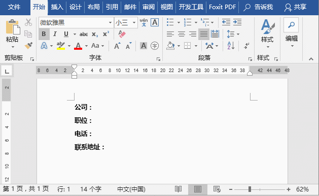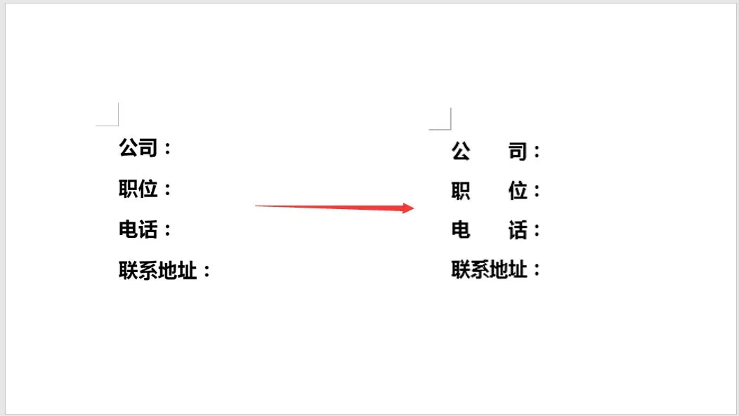 然后以”联系地址”文本的宽度值为标准,对上方的其他文字进行宽度调整: