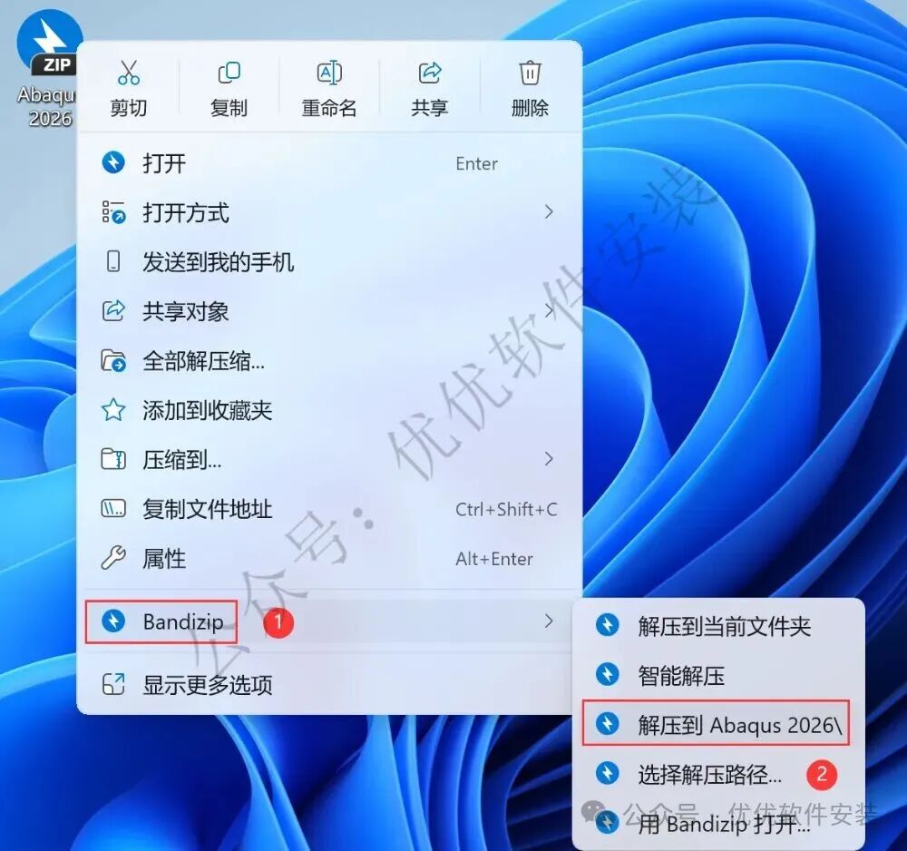 1、下载Abaqus 2026软件安装包到电脑上,右键选择【解压到Abaqus 2026\】