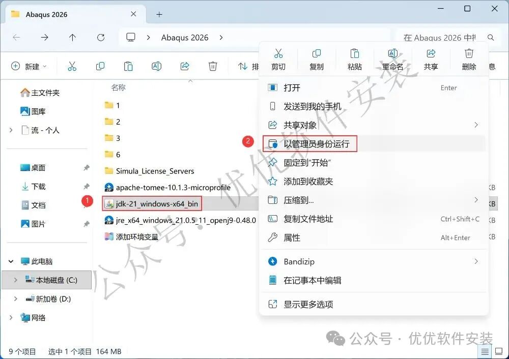 9、找到【jdk-21】应用程序,右键选择【以管理员身份运行】它