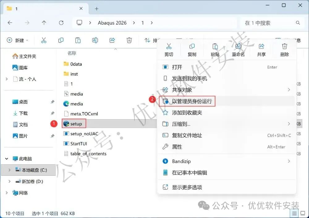 15、找到【setup】应用程序,右键选择【以管理员身份运行】它