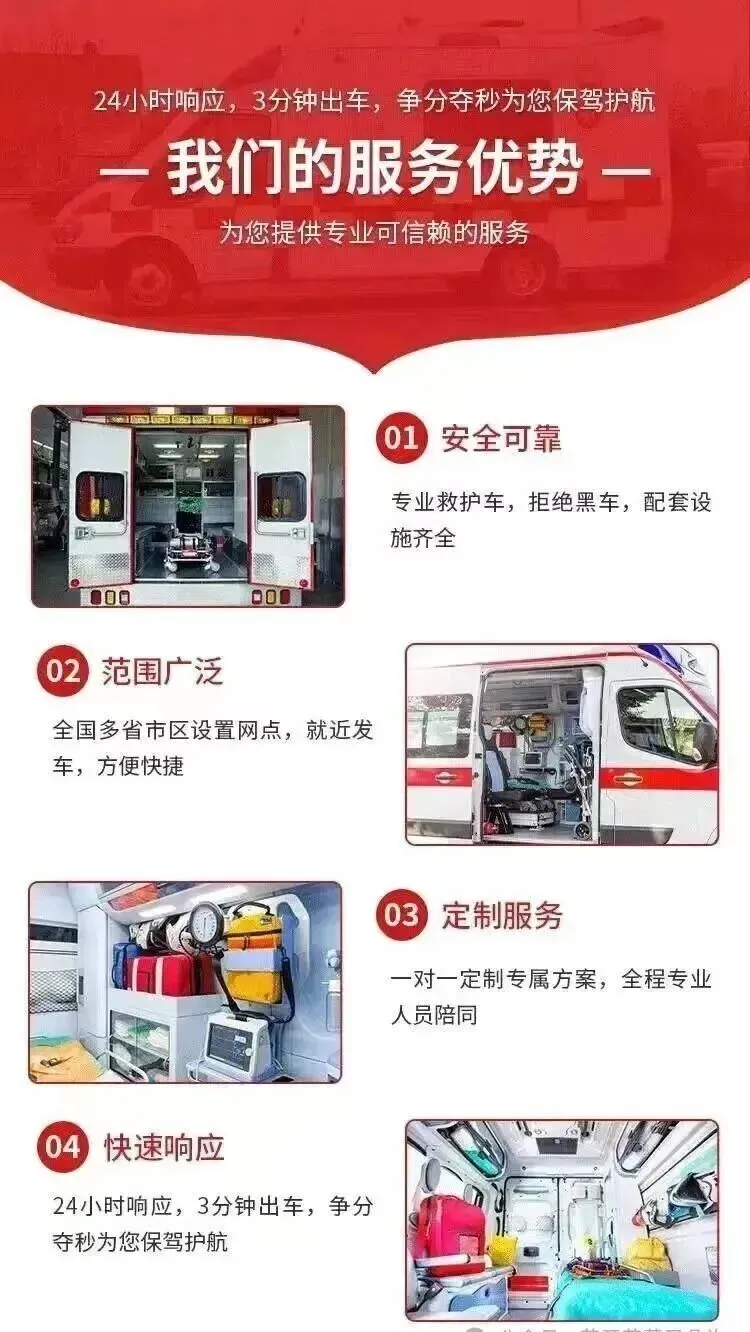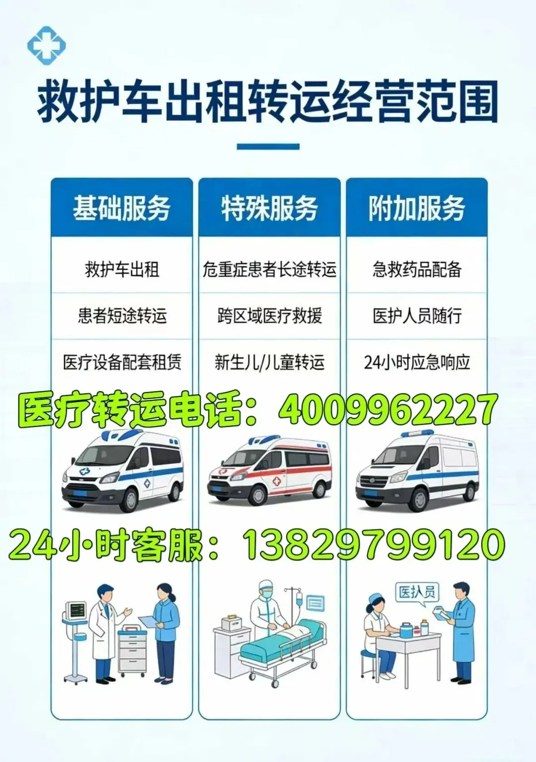 我们提供非急救120非急救转运病人, 救护车转运’长途跨省转运病人新生儿、骨折、重症、危重症患者,行动不便者复查,转院、遗体转诊、跨省回家,遗体运送返乡、我们都能专业承接。