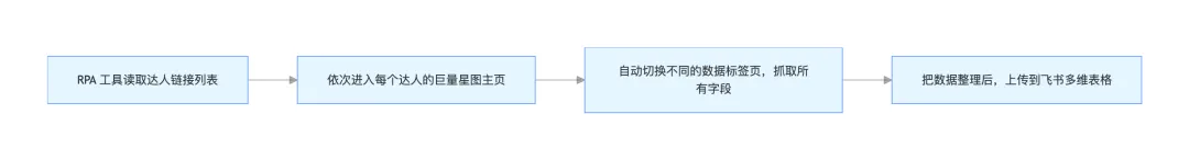 逻辑很简单:你给达人的巨量星图主页链接,RPA 自动进后台把数据全抓下来,写到飞书多维表格里。