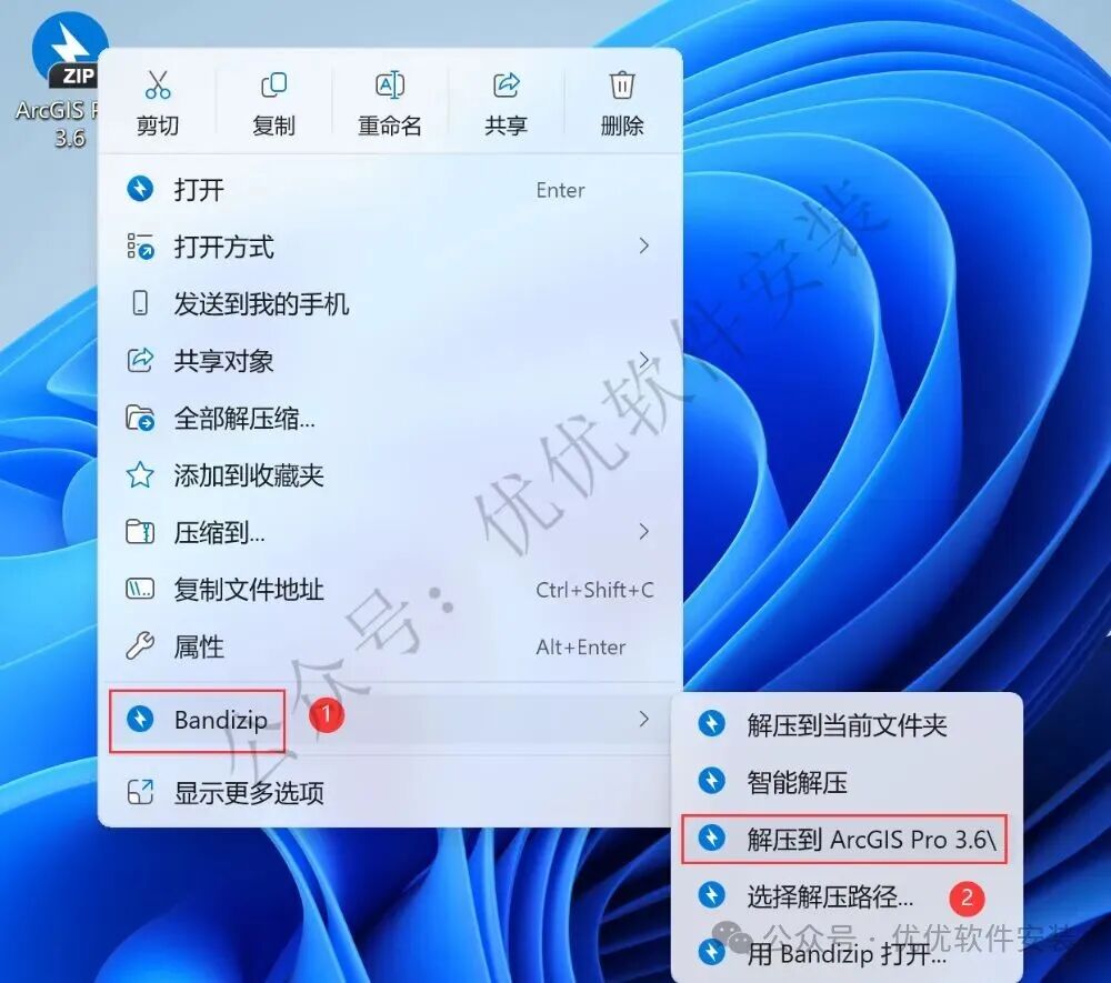 1、下载ArcGIS Pro 3.6软件安装包到电脑上,右键选择【解压到ArcGIS Pro 3.6\】