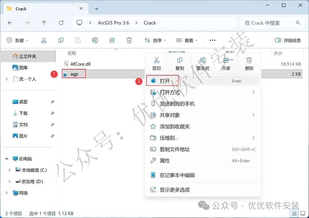 19、回到ArcGIS Pro 3.6文件夹,找到【Crack】文件夹,右键【打开】它