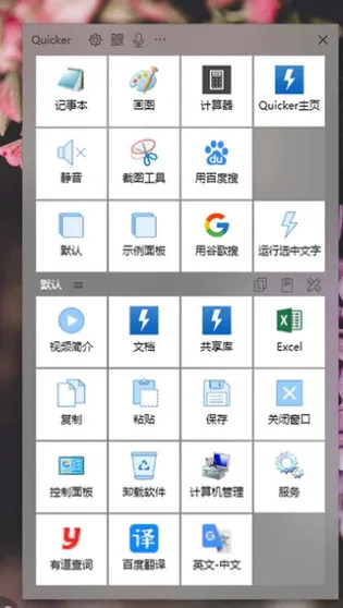 Quicker通过为鼠标右键添加一个强大的快捷面板,将常用操作一键化。你可以自定义面板上的各种动作,比如快速启动软件、执行系统命令、运行脚本等。