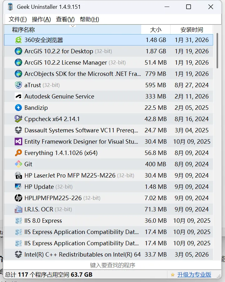 Geek 是专业级的软件卸载工具,不仅能彻底删除程序,还会扫描并清理注册表和残留文件。体积只有几MB,无需安装即可使用,尤其是真的有些软件安装一次卸不干净的情况,这个软件还能删除残留物。