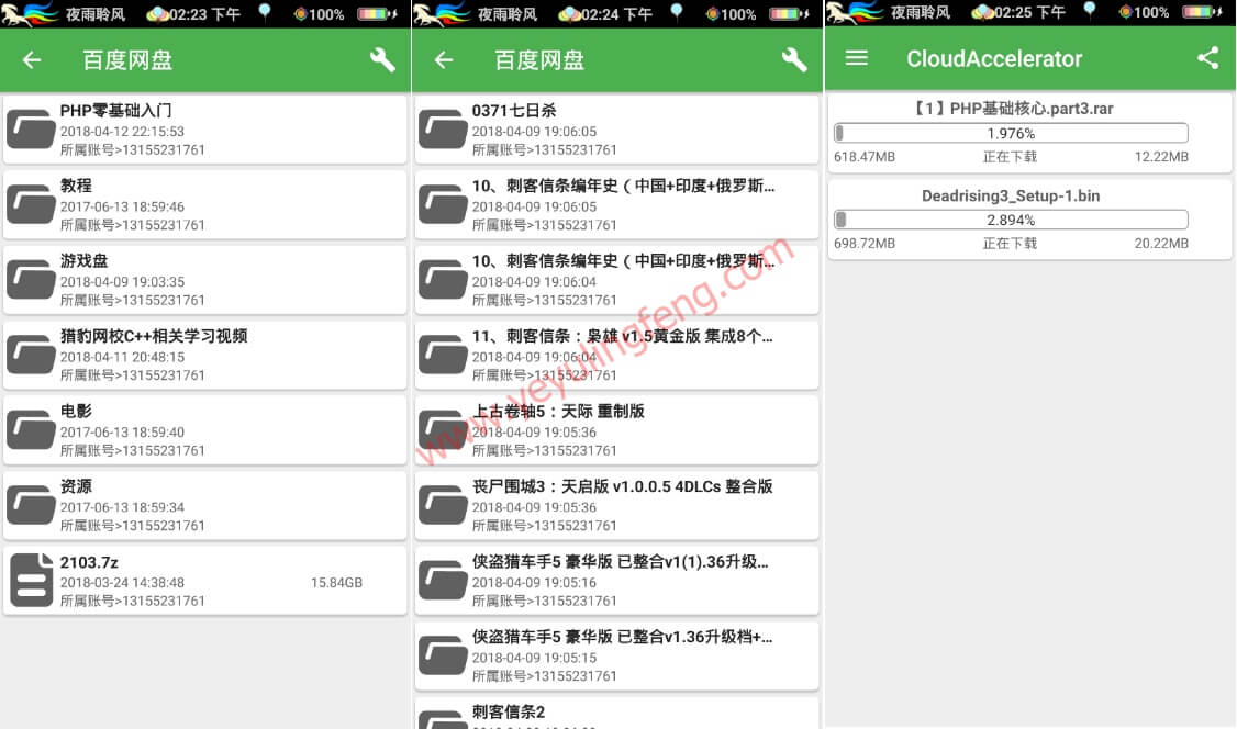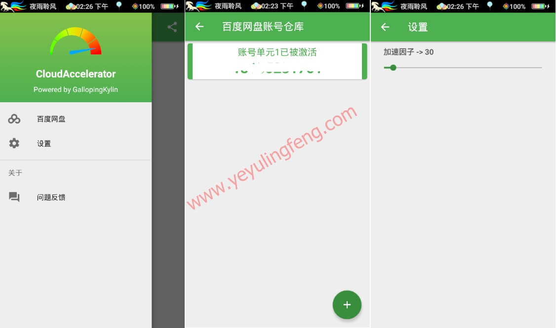 随着各大网盘纷纷倒台就剩百度一家独大了,加上对免费用户限制的太厉害,各种第三方下载工具也是如雨后春笋般的出现在老夜的视野中,而老夜的任务就是第一时间做小白鼠为大家测试后再分享出来,PC端的工具像Pan Download和proxyee-down都是非常使用的不限速选择方案,而安卓移动端的就只有来历不明安全未知的破解版和不怎么好用的山寨云了,CloudAccelerator出自个人开发者之手,界面非常的清爽且没有广告,最关键的是经过测试可以直接飙到满速下载。并支持多账号添加,不过测试发现对Android5.0以下的不太感冒,j仅支持5和5以上的系统。