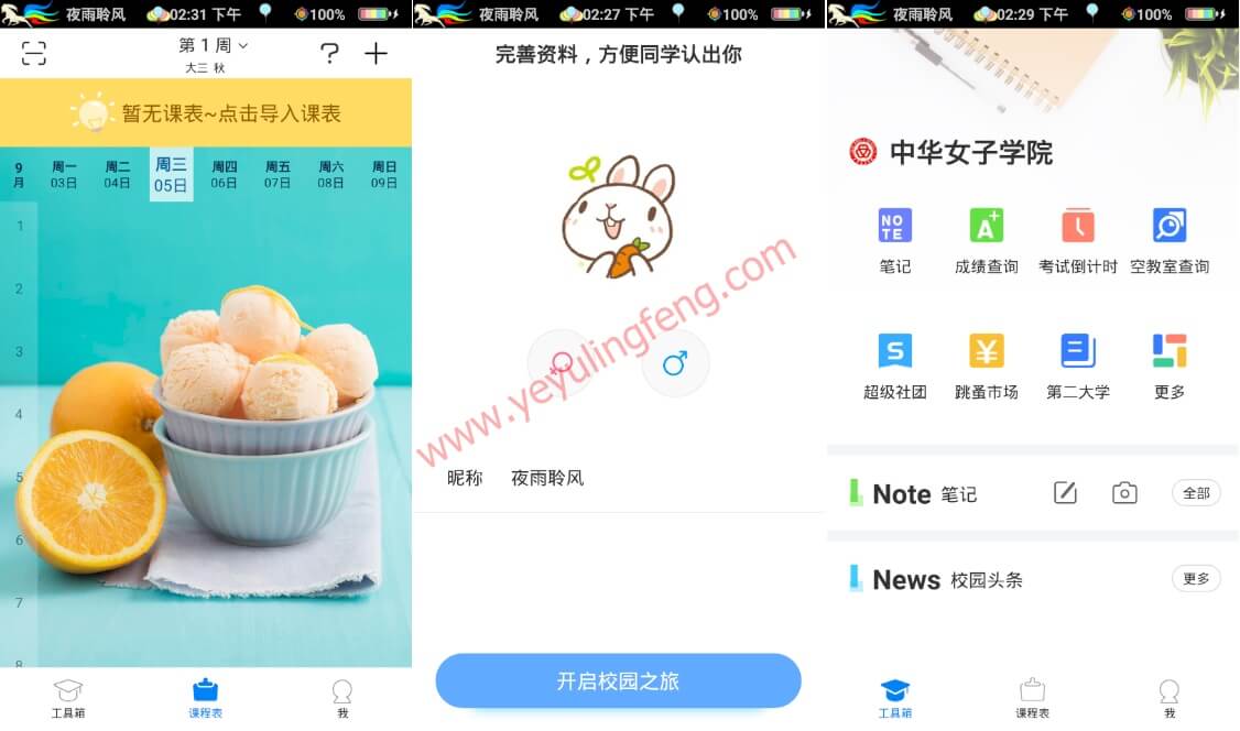 PS:部分高校的课程表是需要通过超级课程表登录教务系统才能获取的,本想偷窥一下某女子高校的详细课程的幻想也破灭了,登录教务系统后自动录入课表到手机,收录千万节课程信息,可以实现校内跨院系任意蹭课。虽说是第三方修改版,但是跟官方版本一样正常使用其他功能,以去除盗版提示大家可以放心使用了。