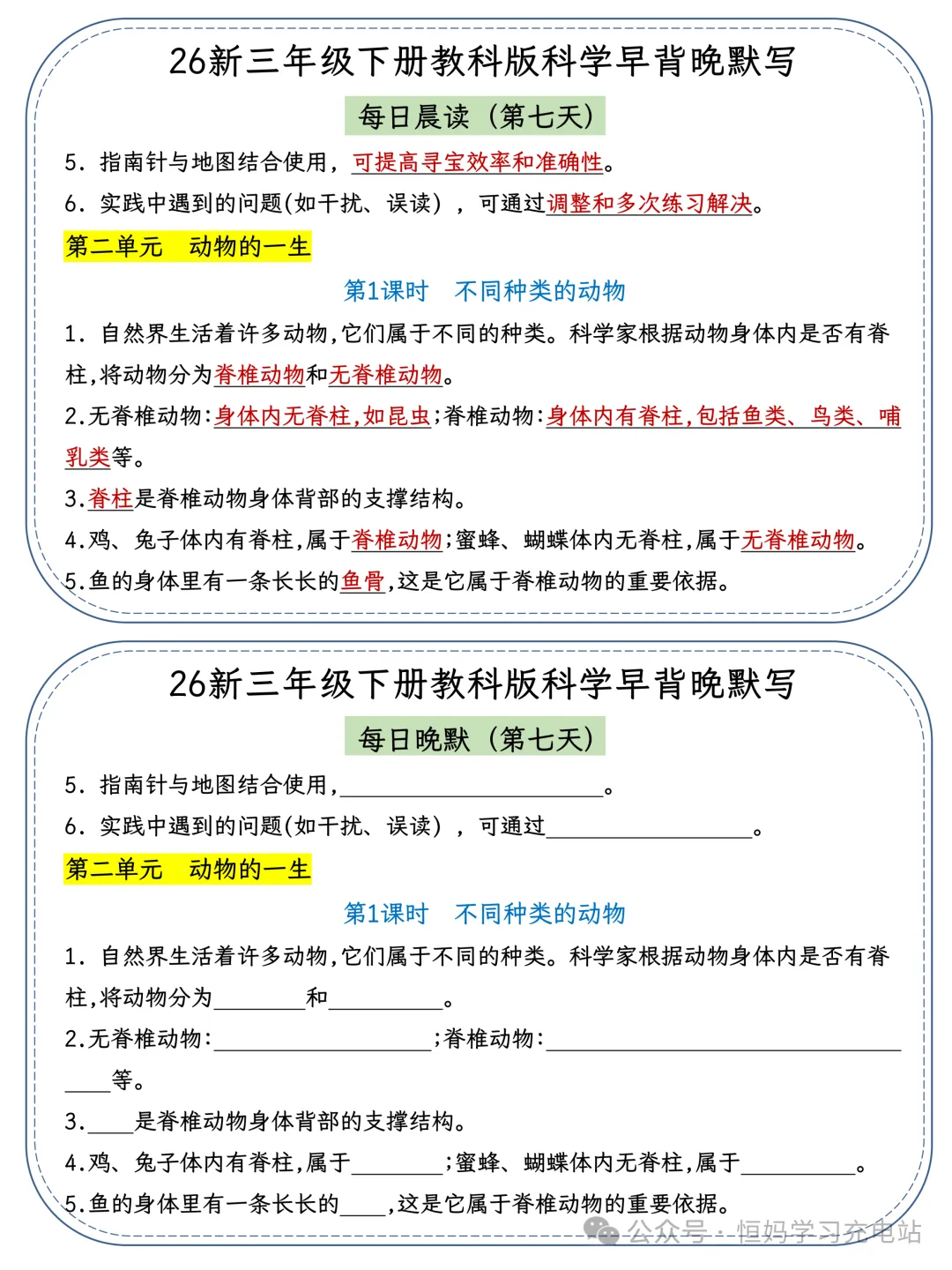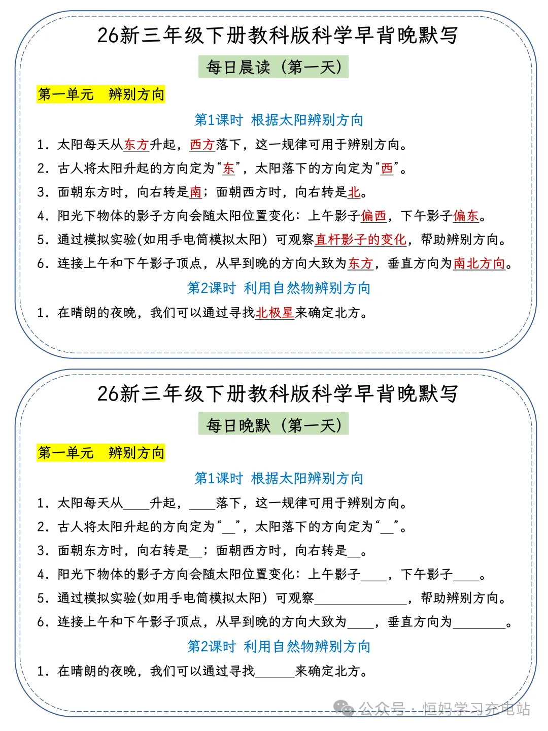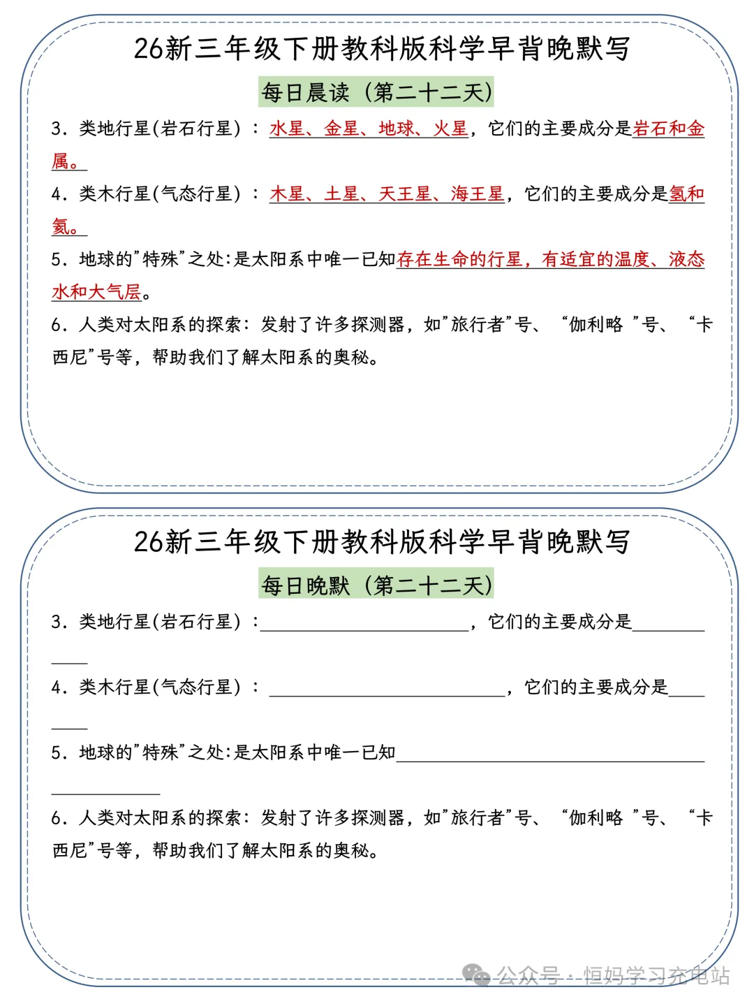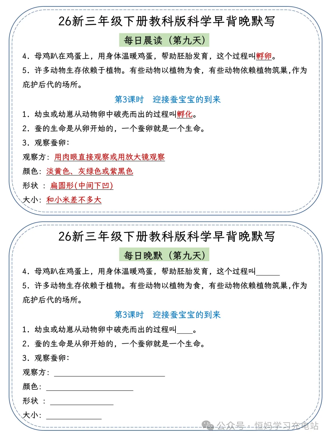 【可下载】26春新版三年级下册科学教科版《早读晚默小纸条》,电子版