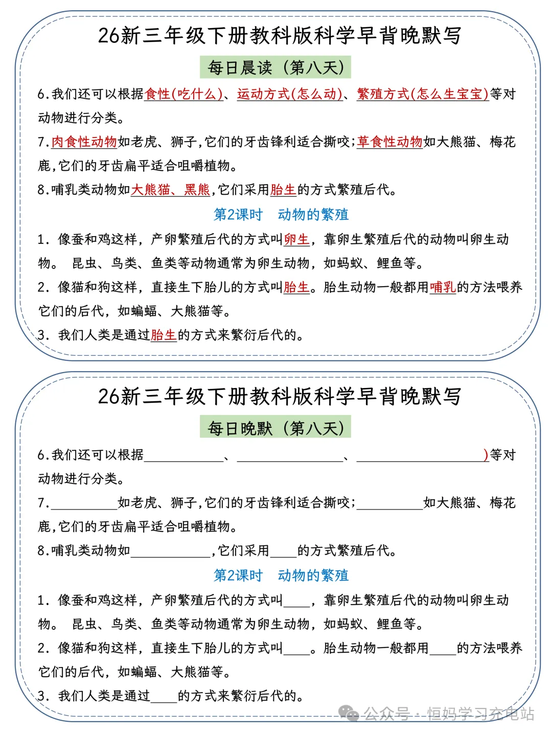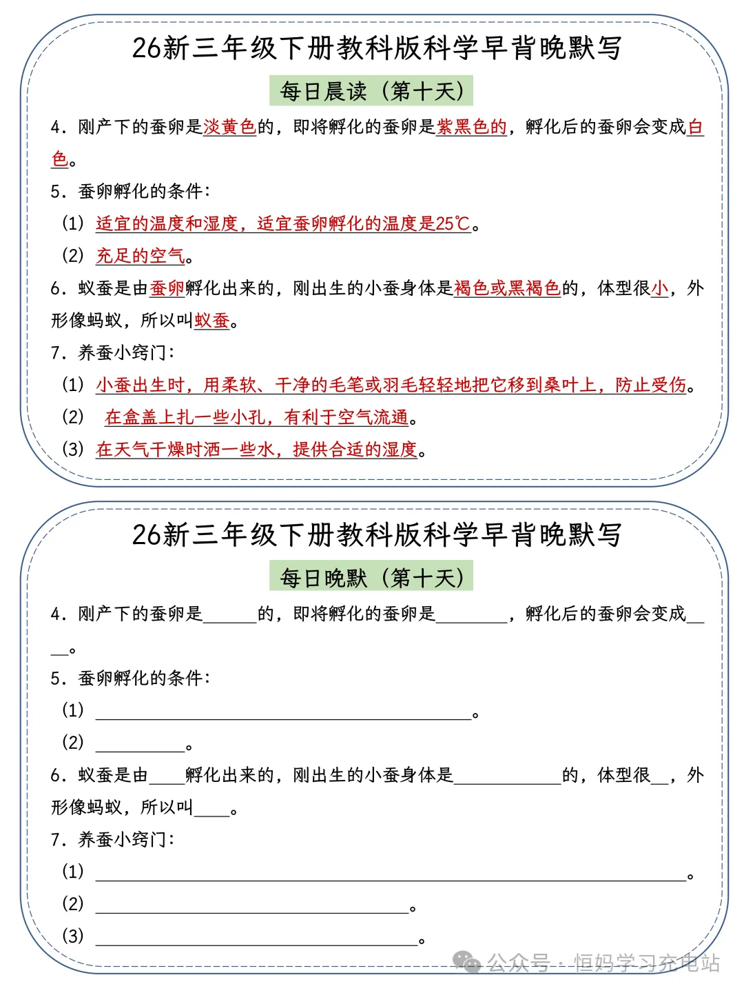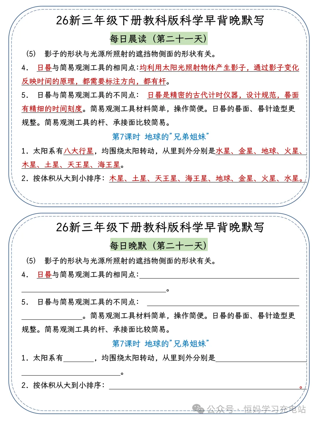 【可下载】26春新版三年级下册科学教科版《早读晚默小纸条》,电子版