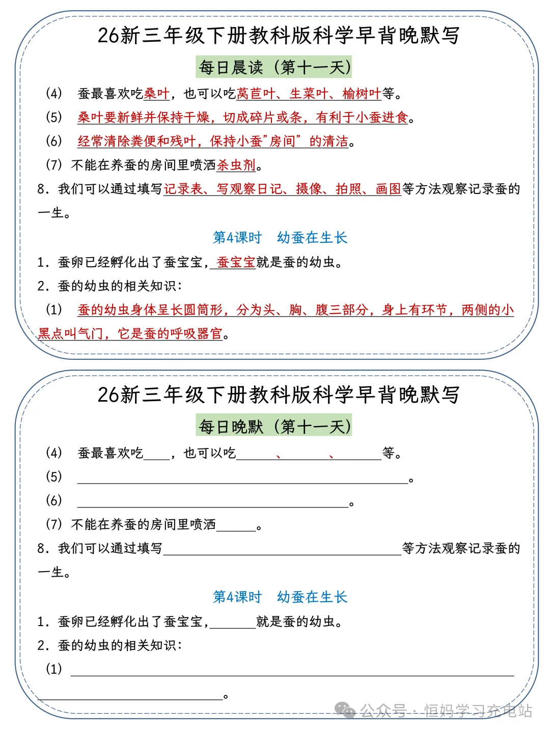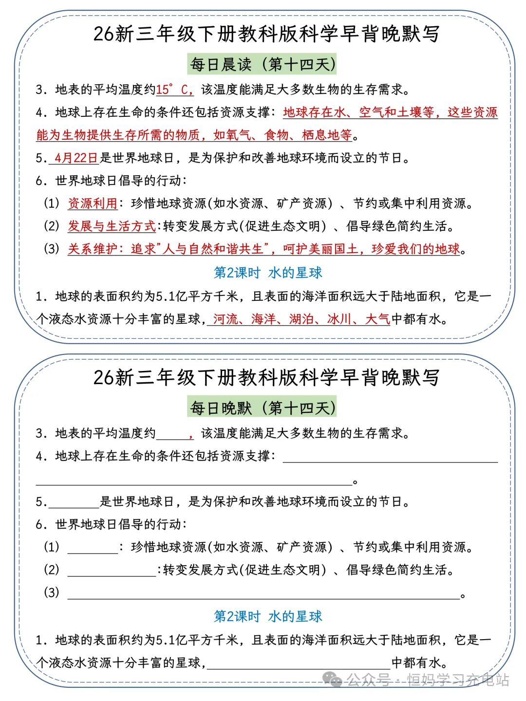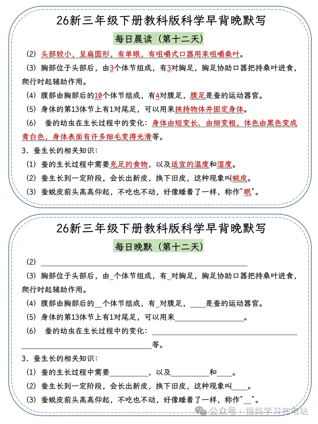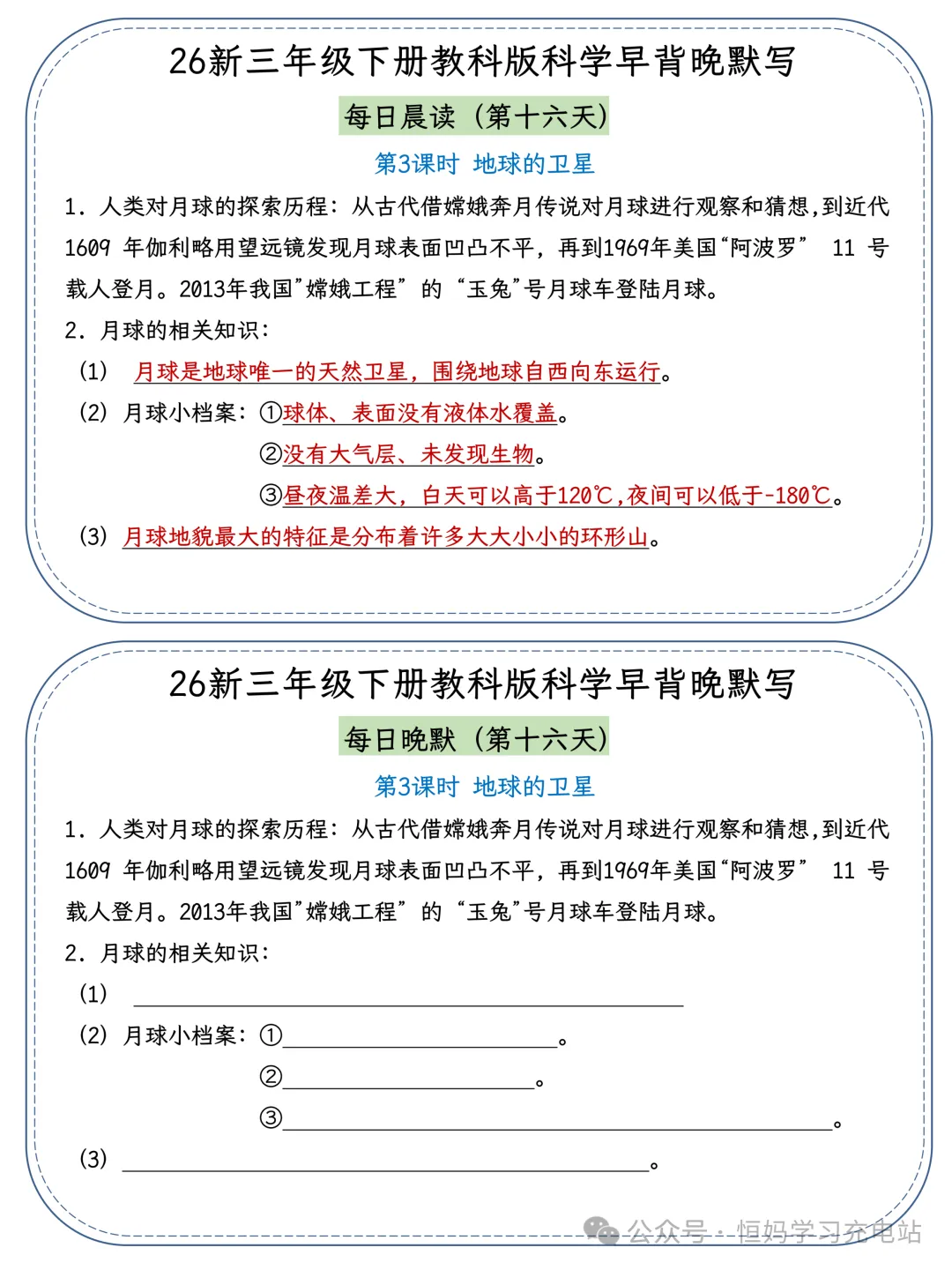 【可下载】26春新版三年级下册科学教科版《早读晚默小纸条》,电子版