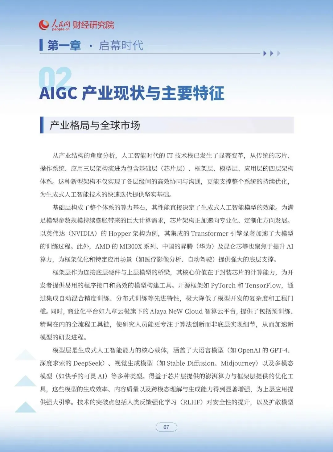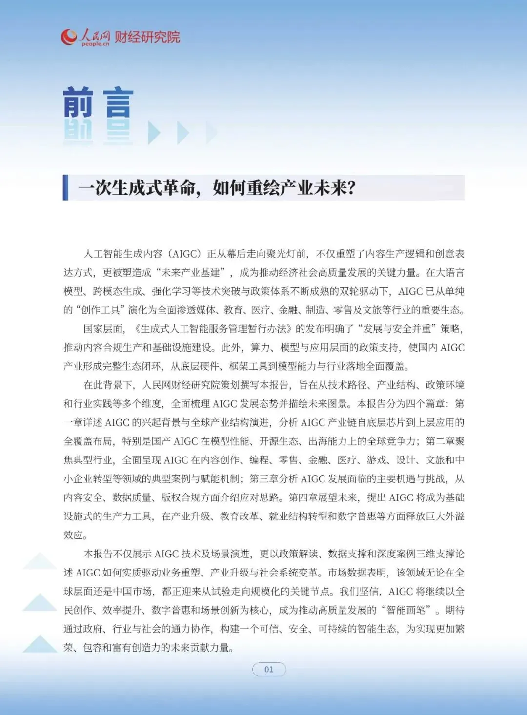 人工智能生成内容(AIGC)正从幕后走向聚光灯前,不仅重塑了内容生产逻辑和创意表达方式,更被塑造成“未来产业基建”,成为推动经济社会高质量发展的关键力量。在大语言模型、跨模态生成、强化学习等技术突破与政策体系不断成熟的双轮驱动下,AIGC 已从单纯的“创作工具”演化为全面渗透媒体、教育、医疗、金融、制造、零售及文旅等行业的重要生态。