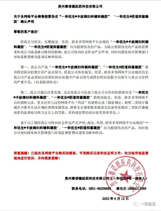 一和优生系列产品合集 全国服务咨询电话:0851-86206689 温馨提示 本公司产品用法用量需在医疗机构专业人士指导下使用或按说明使用! 本公司产品未授权任何网络平台销售 ,为了保障您的使用安全 ,请于正规授权渠道购买并索取凭证 !